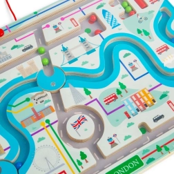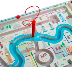 Ξεκινήστε μια περιπετειώδη διαδρομή στους πολύβουους δρόμους του Λονδίνου με αυτόν τον κομψό μαγνητικό λαβύρινθο. Με το κόκκινο μαγνητικό στυλό, τα παιδιά μπορούν να οδηγούν 15 μαγνητικές μπιλίτσες μέσα από τον λαβύρινθο, ενώ γνωρίζουν εμβληματικά αξιοθέατα όπως το Μπάκιγχαμ Πάλας, το London Eye και η Γέφυρα του Πύργου. Ο μαγνητικός λαβύρινθος όχι μόνο διασκεδάζει τα παιδιά, αλλά βοηθά και στην ανάπτυξη των δεξιοτήτων επίλυσης προβλημάτων τους.