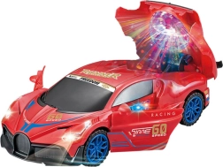 Αυτό το παιδικό σπορ αυτοκίνητο εντυπωσιάζει με τον έντονο σχεδιασμό και τις έξυπνες λειτουργίες του. Με το άνοιγμα του πίσω πορτμπαγκάζ ανάβει μια εντυπωσιακή LED σφαίρα με πολύχρωμο φως που χαρίζει δυναμισμό στην κίνηση. Χάρη στα φωτεινά και ηχητικά εφέ, το παιχνίδι γίνεται ακόμη πιο ρεαλιστικό και ελκυστικό.