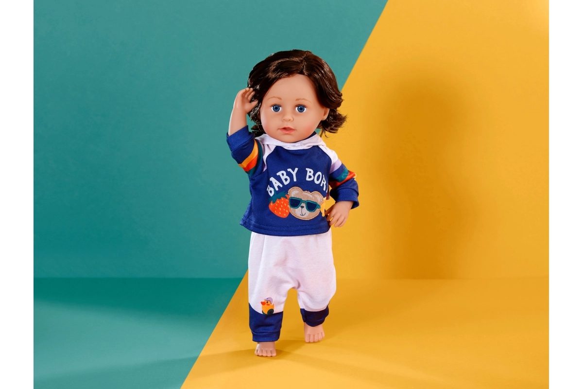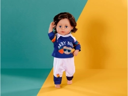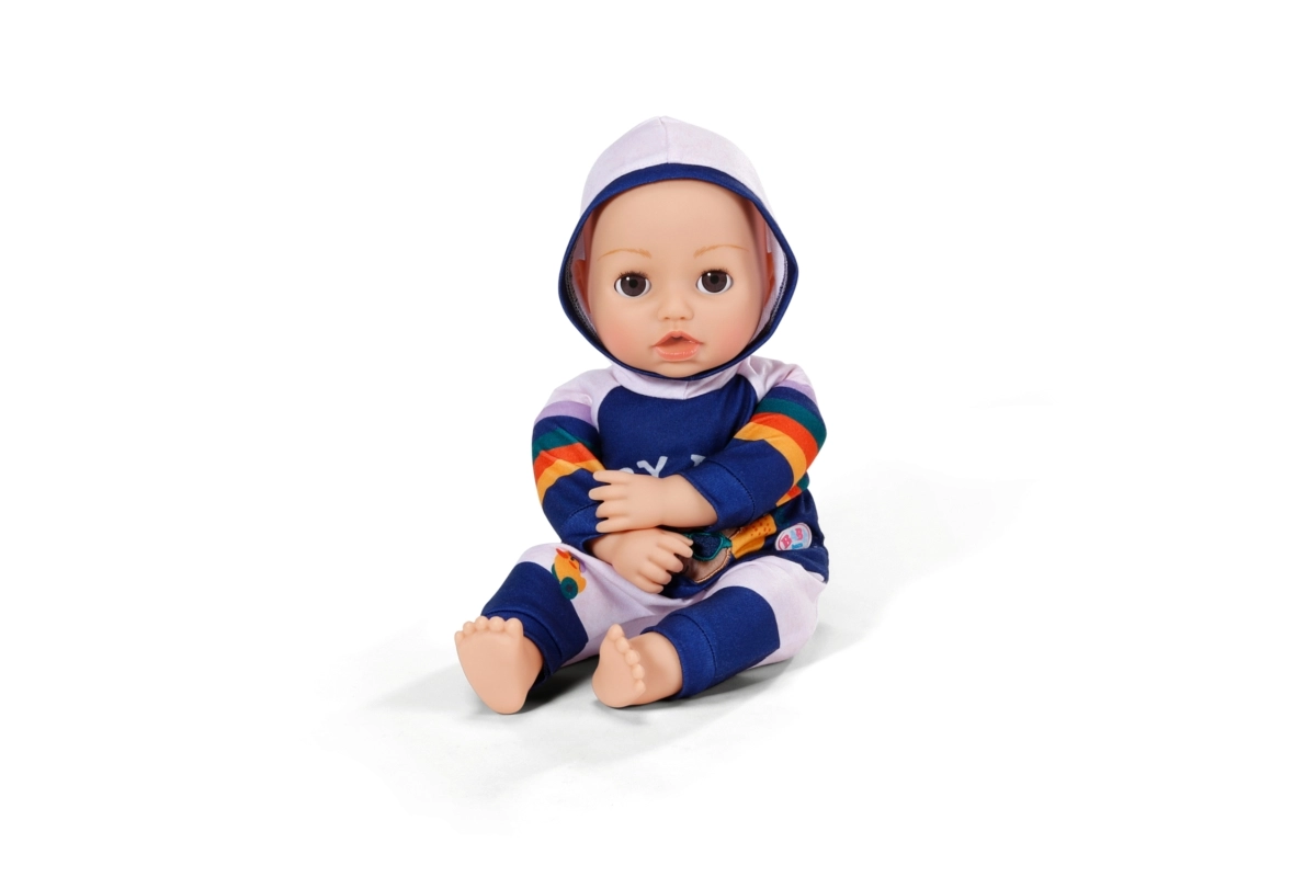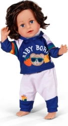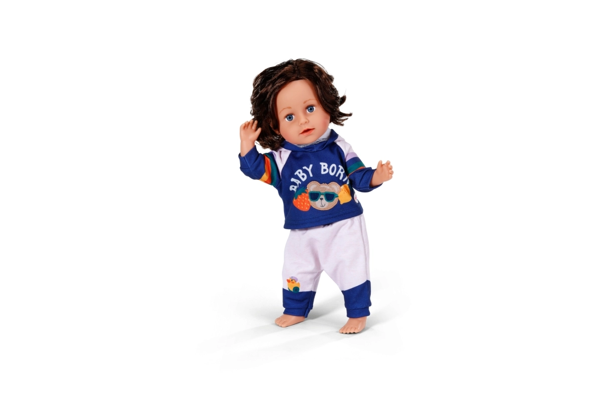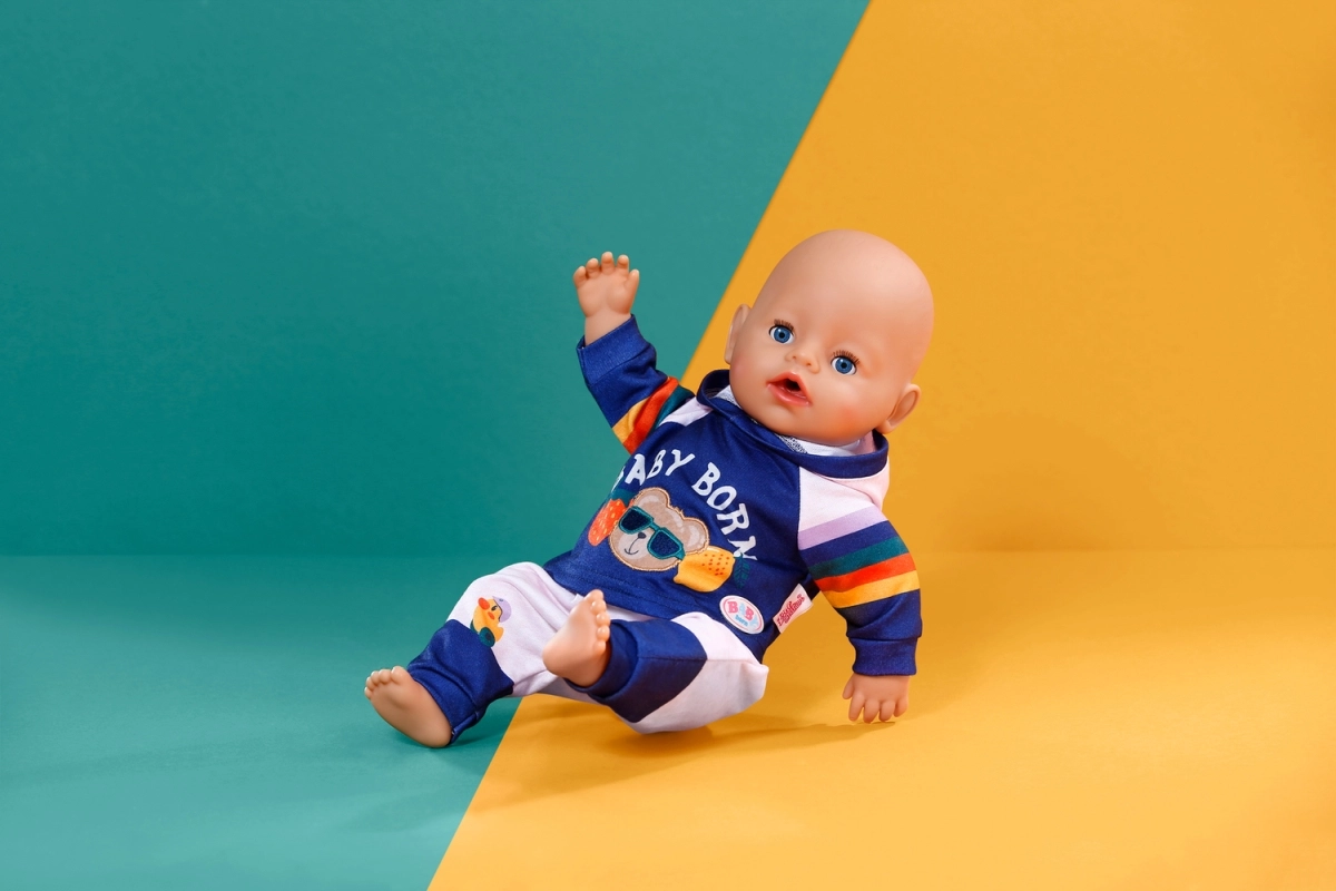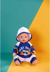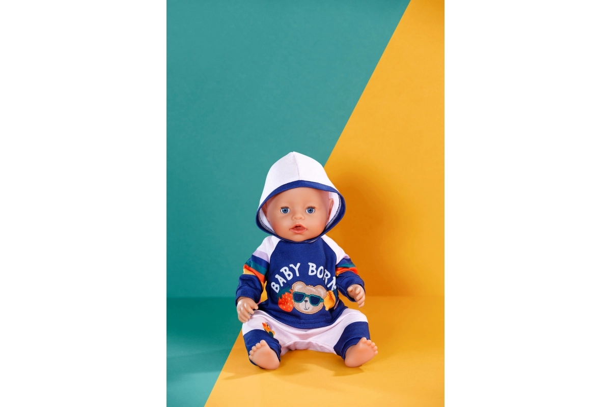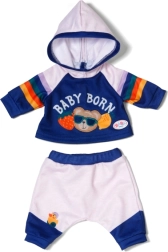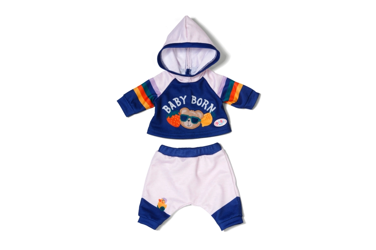 Χαρίστε στην κούκλα σας στυλ και άνεση με αυτή τη μαλακή φόρμα για κούκλες 43 cm. Το φούτερ με κουκούλα, μανίκια με ουράνιες ρίγες και διασκεδαστικό μοτίβο BABY BORN συνδυάζεται υπέροχα με το άνετο παντελόνι. Το ρουχαλάκι έχει σχεδιαστεί ώστε τα παιδιά να μπορούν εύκολα να το φορούν και να το βγάζουν.