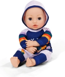Στυλάτη φόρμα για κούκλες μεγέθους 43 cm που δίνει στο παιχνίδι μια νέα διάσταση. Το σετ περιλαμβάνει φούτερ με κουκούλα και παντελόνι σε μπλε‑λευκό συνδυασμό με παιχνιδιάρικες ουράνιες ρίγες και στάμπα BABY BORN. Το ντύσιμο και το ξεγύμνωμα είναι εύκολο, ιδανικό για role‑play, ανάπτυξη λεπτής κινητικότητας και ενίσχυση της φαντασίας για παιδιά από 3 ετών.