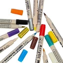 Το σετ ακρυλικών δεικτών ανοίγει σε παιδιά και ενήλικες έναν κόσμο απεριόριστης φαντασίας. Χάρη στην υψηλή περιεκτικότητα σε χρωστικές δημιουργούν πλούσια, καλυπτικά χρώματα σε διάφορες επιφάνειες – από πετραδάκια και κούπες μέχρι μπλουζάκια και τσάντες. Η λεπτή, ακριβής μύτη διευκολύνει το λεπτομερές σχέδιο, τα περιγράμματα και τις επιγραφές.