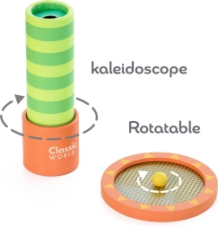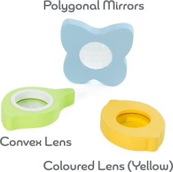 - Περιλαμβάνει καλειδοσκόπιο και 3 διαφορετικούς φακούς που αλλάζουν το χρώμα, το σχήμα και το μέγεθος του γύρω κόσμου
