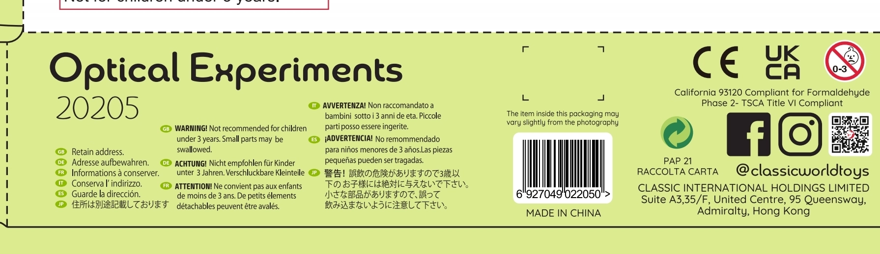 Με αυτό το εκπαιδευτικό σετ από την Classic World μπορείτε να παρουσιάσετε στα παιδιά σας τα μυστικά των οπτικών ψευδαισθήσεων. Το σετ περιλαμβάνει 16 διαφορετικά εξαρτήματα που θα συναρπάσουν το παιδί σας και θα ενισχύσουν την περιέργειά του. Όλα τα στοιχεία είναι κατασκευασμένα από υψηλής ποιότητας ξύλο και χαρακτηρίζονται από ελκυστικά χρώματα.