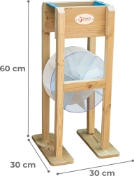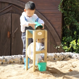 Ρίξτε άμμο ή νερό στη χοάνη και δείτε πώς ο μπλε τροχός αρχίζει να γυρίζει. Τα παιδιά κατανοούν διαισθητικά την αρχή της κίνησης και της ενέργειας και αναπτύσσουν τη λογική σκέψη.