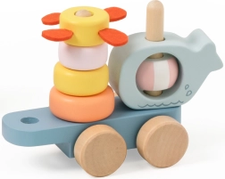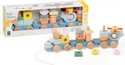 Το τρενάκι υποστηρίζει τη λεπτή κινητικότητα, την χωρική φαντασία και τη δημιουργικότητα. Τα τρία συνδεόμενα «αμαξίδια» μεταφέρουν διάφορα δομικά κομμάτια, που τα παιδιά συνδυάζουν ελεύθερα. Το κορδόνι έλξης παρακινεί την κίνηση και μετατρέπει κάθε δωμάτιο σε μια περιπέτεια ωκεάνιου ταξιδιού.