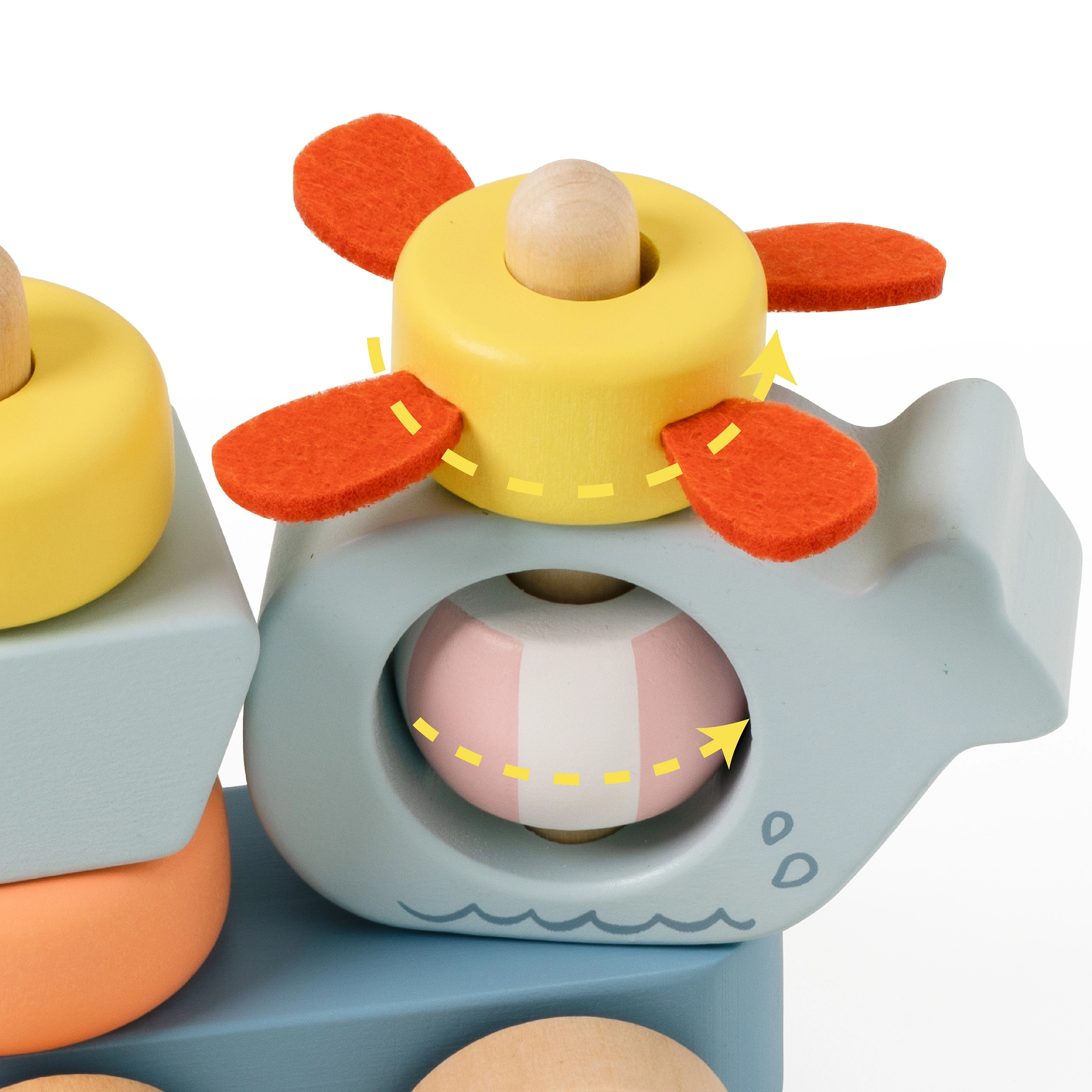 Ανακαλύψτε τη μαγεία του ωκεανού με το χαριτωμένο τρενάκι, κατασκευασμένο από ποιοτικό ξύλο με λείανση στις άκρες για ασφαλές παιχνίδι. Το σετ Ocean Pull φέρνει πλοία, φάρο, ελικόπτερο και θαλάσσια πλάσματα – όλα για ελεύθερη συναρμολόγηση και εξερεύνηση σχημάτων και χρωμάτων.