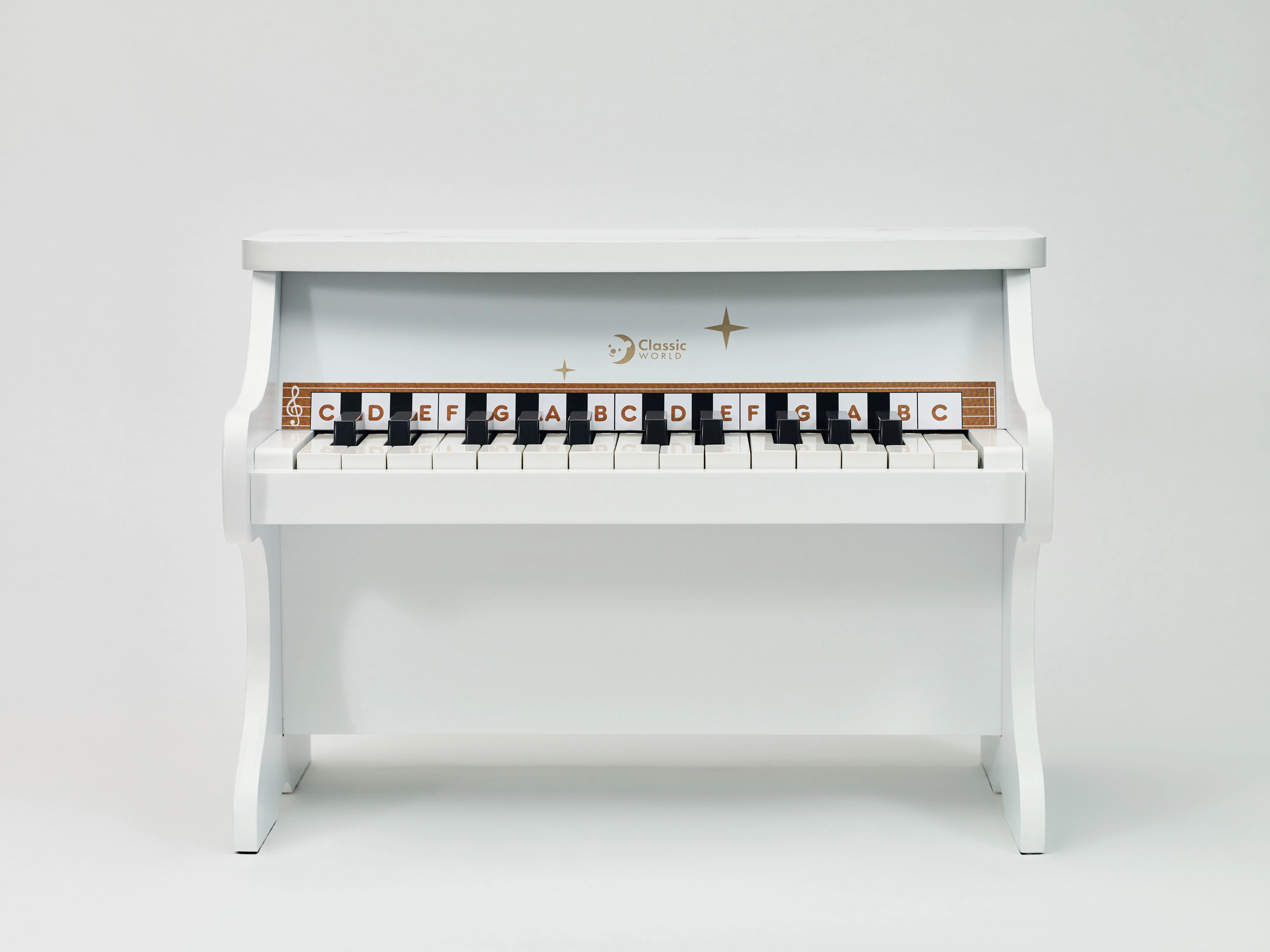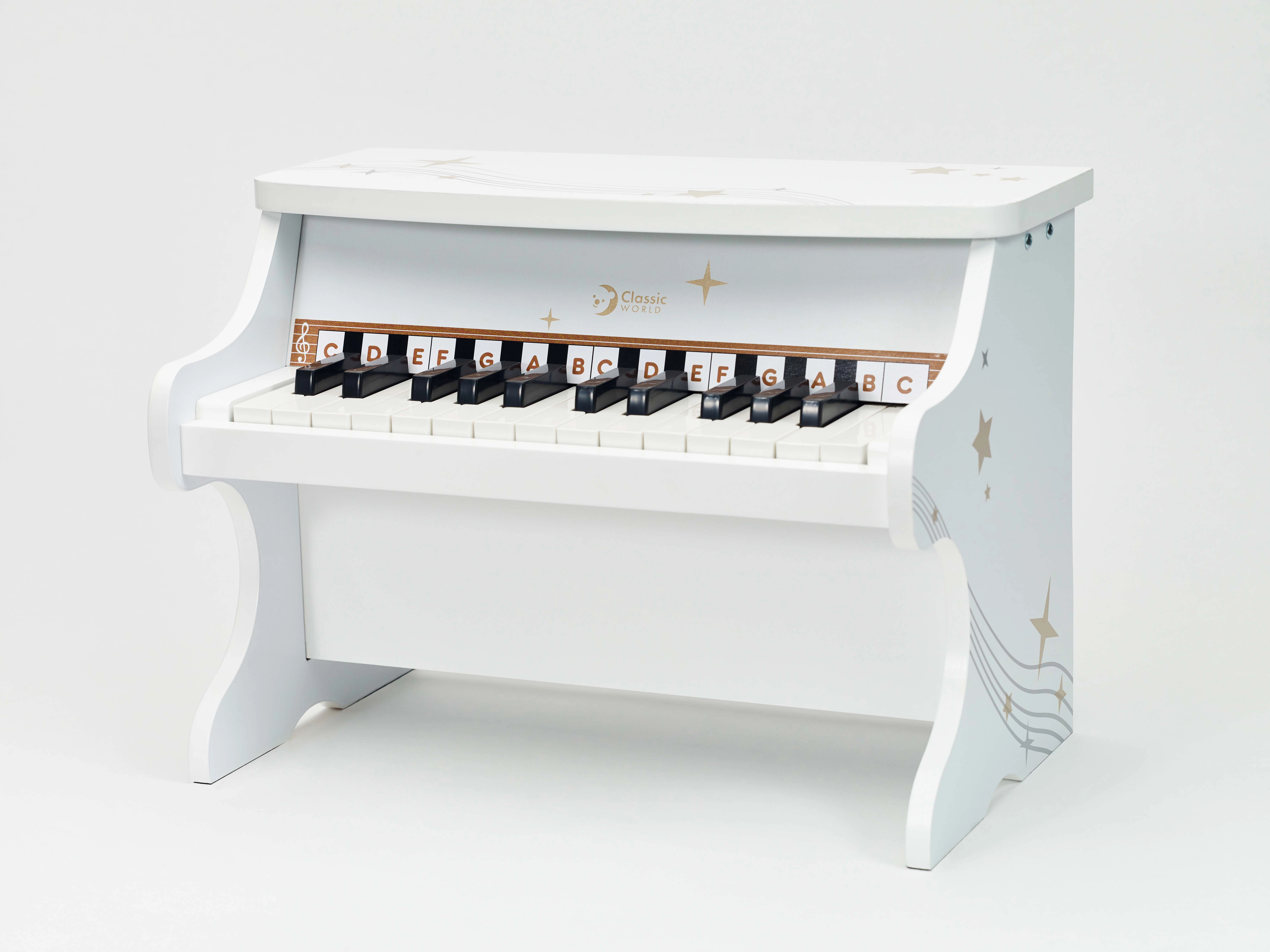 Το παιδικό πιάνο CLASSIC WORLD είναι προσεκτικά κατασκευασμένο από ξύλο και βαμμένο με μη τοξική επίστρωση σε λευκό χρώμα. Η ρεαλιστική κατασκευή και ο καθαρός τόνος προσφέρουν αυθεντική μουσική εμπειρία και ενθαρρύνουν τα παιδιά να ανακαλύψουν τη μελωδία και τον ρυθμό.