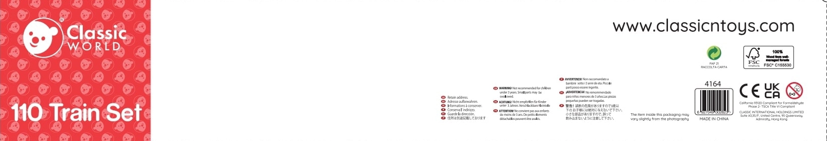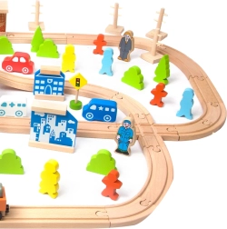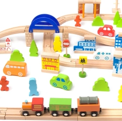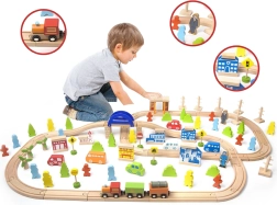 Ανακαλύψτε τη μεγάλη ξύλινη σιδηροδρομική διαδρομή με 110 τεμάχια από τη μάρκα CLASSIC WORLD. Ένα πολύχρωμο σετ με ράγες, γέφυρα, κτίρια, οχήματα και φιγούρες που υποστηρίζει τη λεπτή κινητικότητα, τον συντονισμό χεριού–ματιού και το δημιουργικό παιχνίδι. Ασφαλή φυσικά υλικά και μεγάλη αντοχή κάνουν αυτή τη διαδρομή ένα υπέροχο δώρο για παιδιά από 3 ετών.