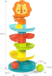 Αυτός ο πολύχρωμος σπειροειδής πύργος βοηθά στην ανάπτυξη των κινητικών δεξιοτήτων, του συντονισμού και της ακρίβειας των παιδιών σας. Τα πέντε επίπεδα εγγυώνται μακροχρόνια διασκέδαση, ενώ το συμπαθητικό λιονταράκι στην κορυφή μπορεί να εμπνεύσει τα παιδιά σε στόχους και βελτίωση των ικανοτήτων τους. Τα μπαλάκια περιέχουν μικρά στοιχεία που παράγουν ήχους και προσφέρουν επιπλέον αισθητηριακά ερεθίσματα. Το παιχνίδι είναι κατασκευασμένο από ασφαλές και ελεγμένο πλαστικό για μέγιστη ασφάλεια των μικρών παικτών.
