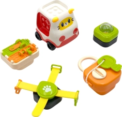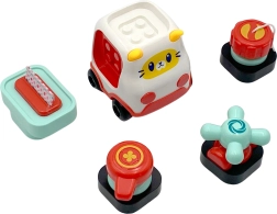 Στη συσκευασία περιλαμβάνεται αυτοκινητάκι, στο οποίο μπορούν να προσαρμόζονται στοιχεία από τον πίνακα.