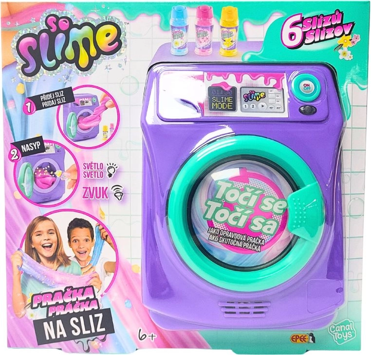 Ανακαλύψτε τη διασκεδαστική δημιουργία σλάιμ με το παιχνίδι SO SLIME αρωματικό πλυντήριο σε μωβ‑τιρκουάζ χρώμα. Παιδιά από 6 ετών απολαμβάνουν φωτεινά και ηχητικά εφέ, περιστρεφόμενο κάδο και διαφανές πορτάκι για να παρακολουθούν το ανακάτεμα. Στη συσκευασία θα βρείτε 6 σακουλάκια σλάιμ, καλαθάκι, μπουκάλι και 3 αρωματικές πέρλες για μαγικά αρωματισμένο, πολύχρωμο σλάιμ. Τροφοδοσία 3× AA (δεν περιλαμβάνονται).