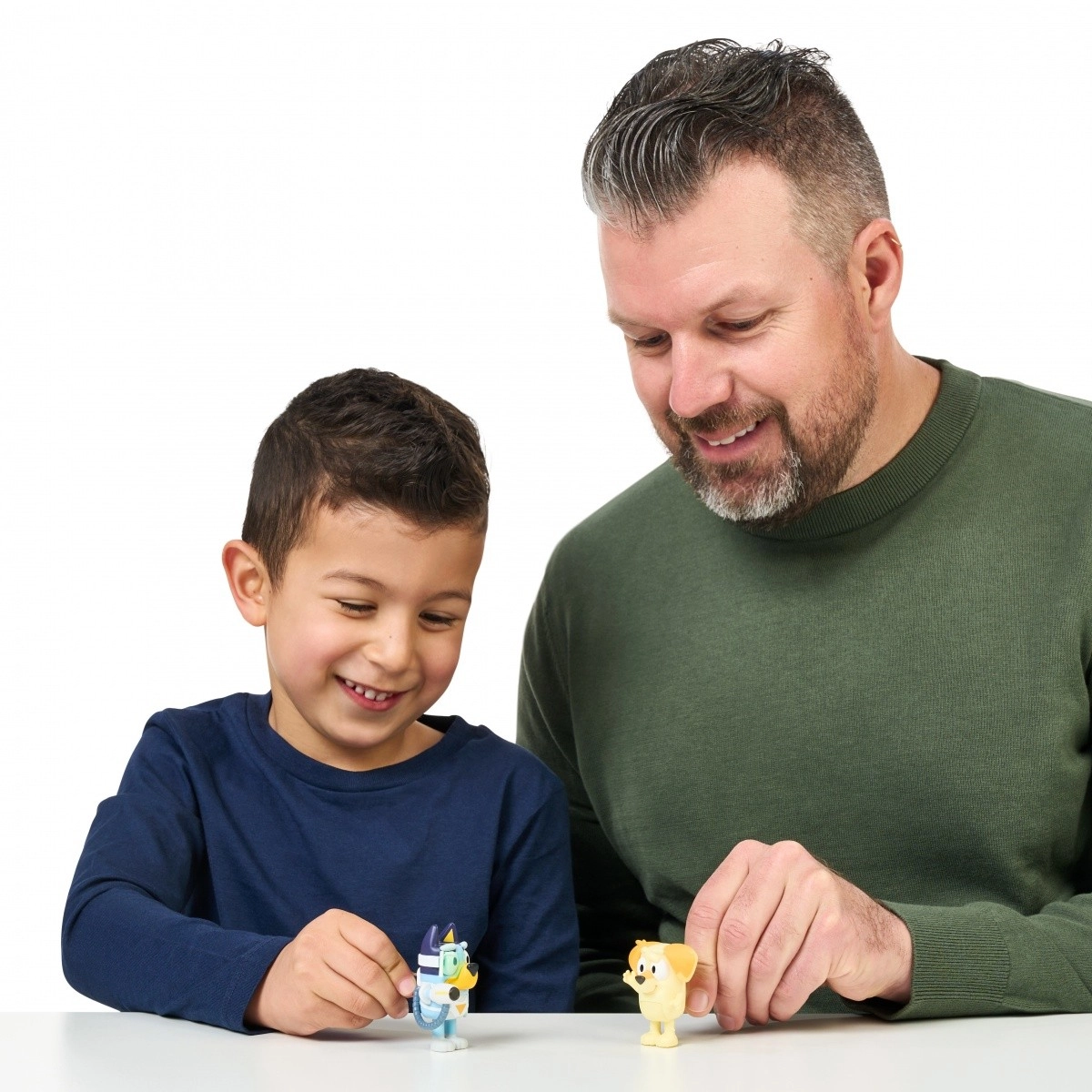 Και οι δύο φιγούρες διαθέτουν κινούμενα μέρη, ώστε τα παιδιά να τις ποζάρουν εύκολα και να αναπαριστούν αγαπημένες σκηνές από τη σειρά BLUEY.