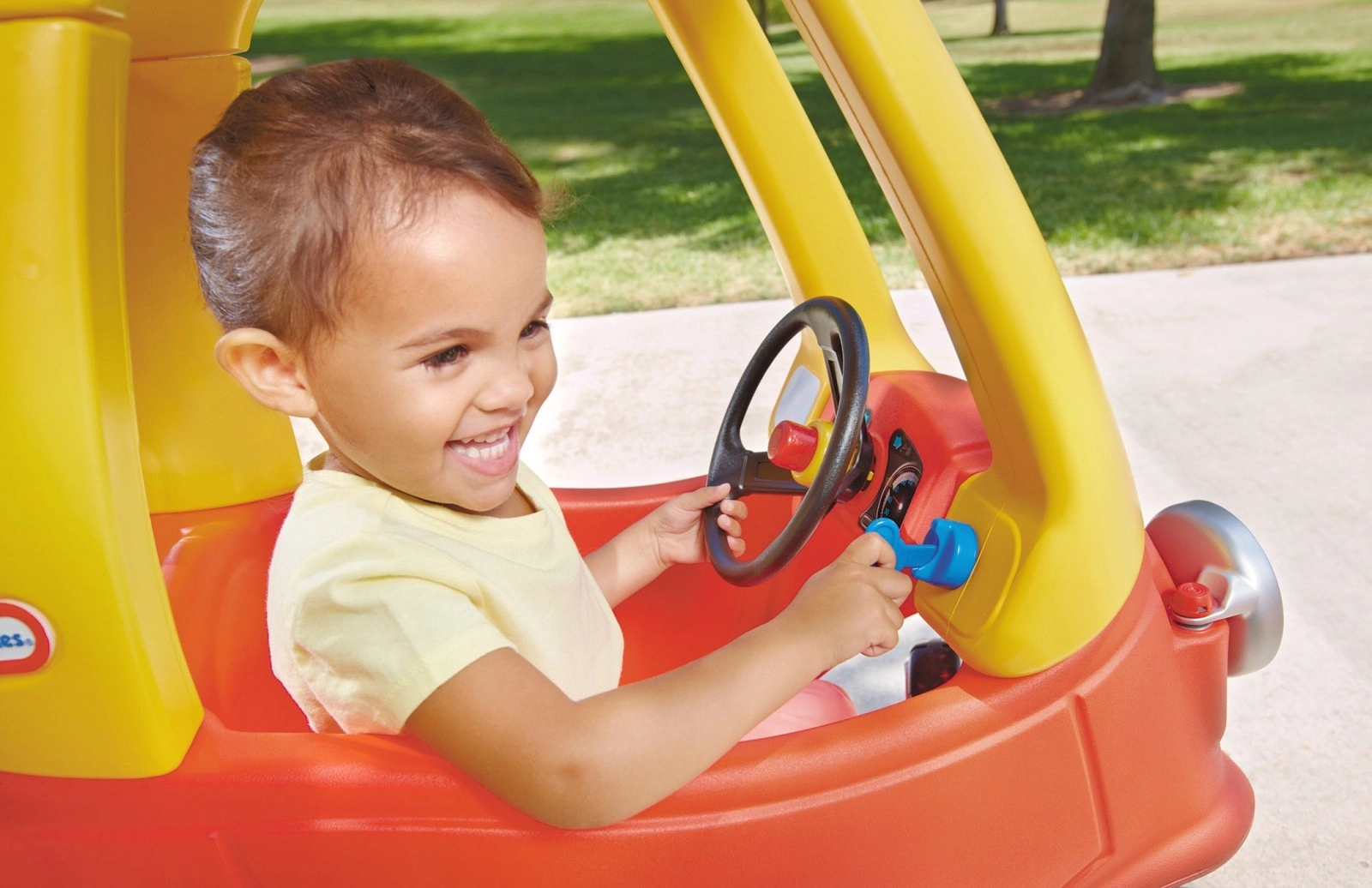 Τα παιδιά μπορούν να κινήσουν το Cozy Coupe με τα πόδια τους ή να τα σπρώχνουν οι γονείς χάρη στο άνετο χερούλι. Το αφαιρούμενο πάτωμα προσφέρει στα μικρότερα παιδιά αίσθηση ασφάλειας και στους γονείς πλήρη έλεγχο της διαδρομής.