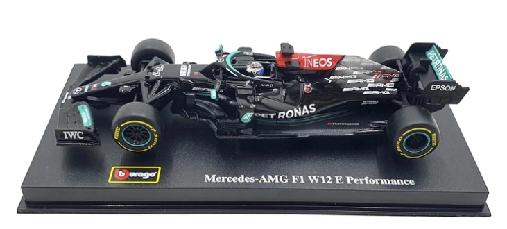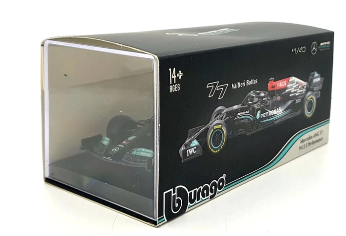 Το μεταλλικό μοντέλο αυτοκινήτου Bburago σε κλίμακα 1:43 παρουσιάζει το όχημα Mercedes-AMG F1 W12 E Performance (2021) με τον αριθμό 77 του οδηγού Valtteri Bottas. Η λεπτομερής κατασκευή, τα αυθεντικά χρώματα και ο αγωνιστικός σχεδιασμός θα ενθουσιάσουν συλλέκτες και φίλους της F1, ενώ περιλαμβάνεται και κράνος οδηγού.