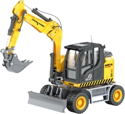 Ρεαλιστικό μεταλλικό μοντέλο τροχοφόρου εκσκαφέα με προωθητήρα σε κλίμακα 1:50 που συνδυάζει λειτουργίες εκσκαφέα και μπουλντόζας για ακόμη περισσότερη διασκέδαση και συλλεκτική αξία. Χάρη στον συνδυασμό μεταλλικού κράματος και πλαστικού ABS προσφέρει σταθερή κατασκευή, έμφαση στη λεπτομέρεια και μεγάλη αντοχή. Διαθέτει κινούμενο βραχίονα, περιστρεφόμενη καμπίνα, λειτουργική μπροστινή λεπίδα και ελαστικούς τροχούς για ομαλή κίνηση.