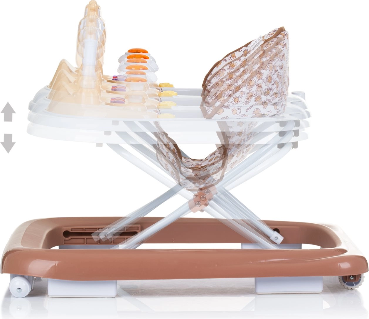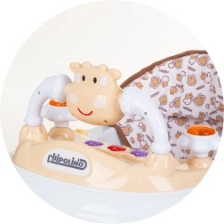 Το διαδραστικό περπατούρι CHIPOLINO Little Cow Mocca είναι ιδανικό για παιδιά έως 12 κιλά που κάθονται μόνα τους. Προσφέρει φαρδιά βάση για σταθερότητα, 3 ρυθμιζόμενες θέσεις καθίσματος, μπροστινούς τροχούς που περιστρέφονται 360° και διαδραστικό ταμπλό για την ανάπτυξη της όρασης και της ακοής. Χάρη στις 6 ασφαλιστικές στοπ προστατεύει από ανατροπή και πτώση από σκάλες.