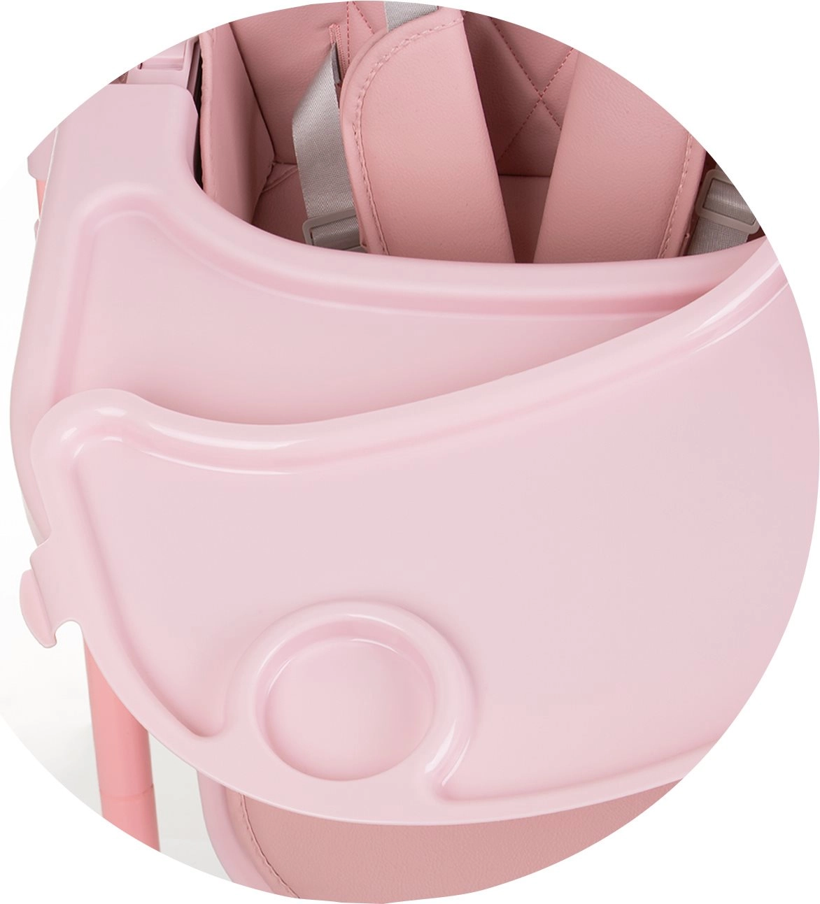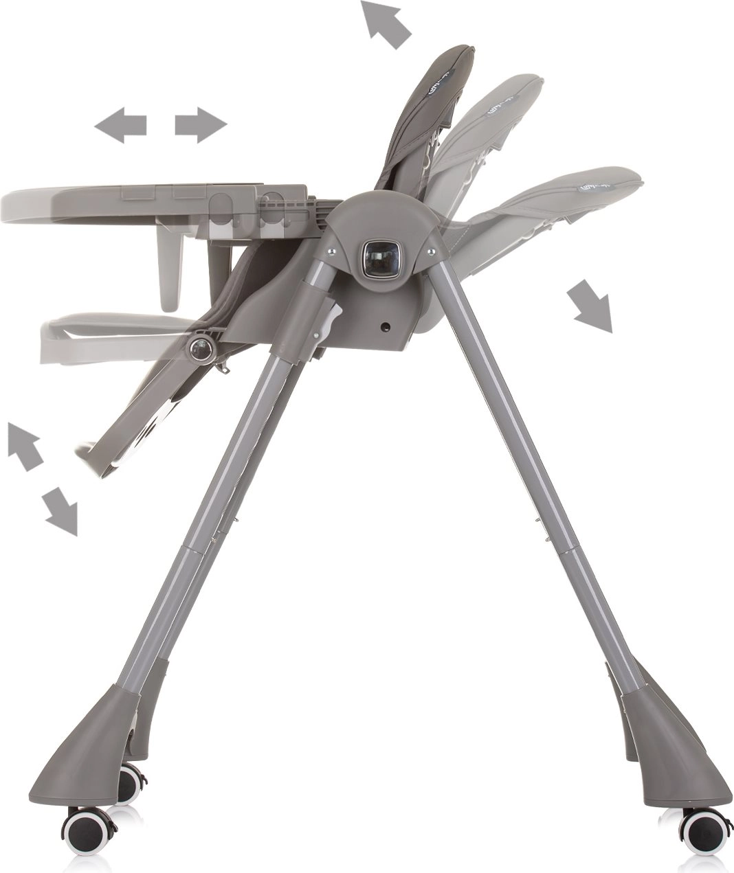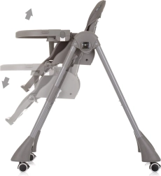 Οι γονείς θα εκτιμήσουν τον διπλό δίσκο – τον επάνω αποσπώμενο για γρήγορο καθάρισμα και τον κάτω με προστατευτική μπάρα Τ για μέγιστη ασφάλεια. Μπορείτε να προσαρμόσετε εύκολα το καρεκλάκι στο τραπέζι φαγητού χάρη στα 8 επίπεδα ύψους. Τα τέσσερα ροδάκια εξασφαλίζουν κινητικότητα στο σπίτι και μετά το φαγητό το διπλώνετε εύκολα σε συμπαγές μέγεθος.