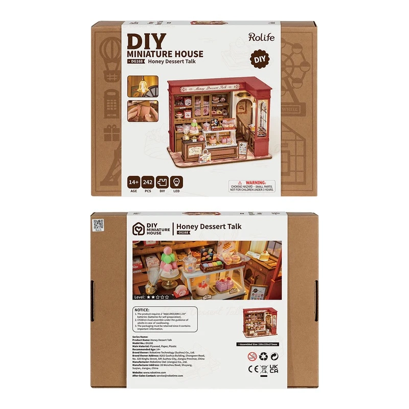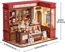 Ζεστό LED φως φωτίζει τις βιτρίνες και αναδεικνύει κάθε λεπτομέρεια της μινιατούρας ζαχαροπλαστείου. Ιδανικό για έκθεση σε ράφι ή γραφείο.