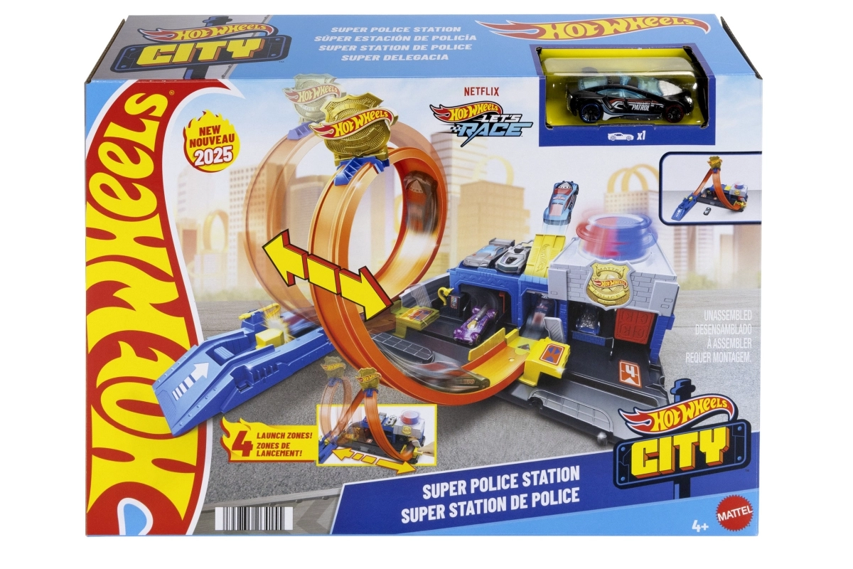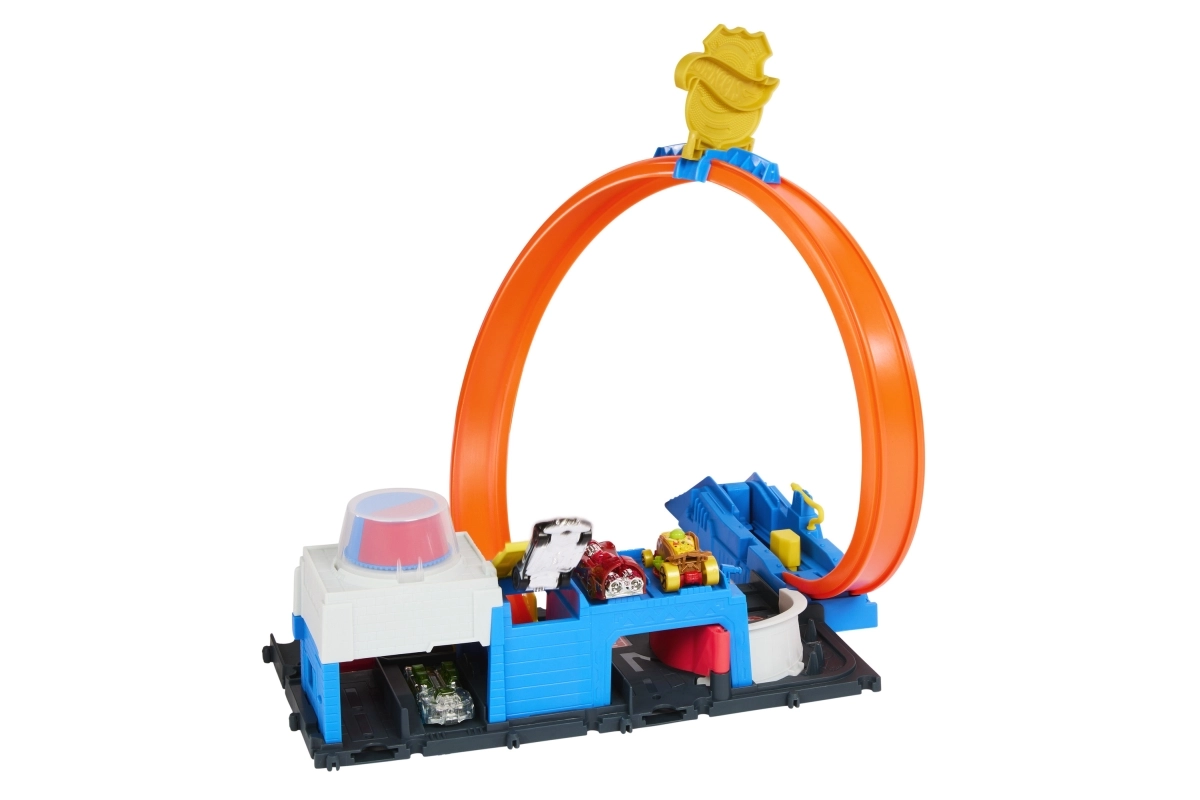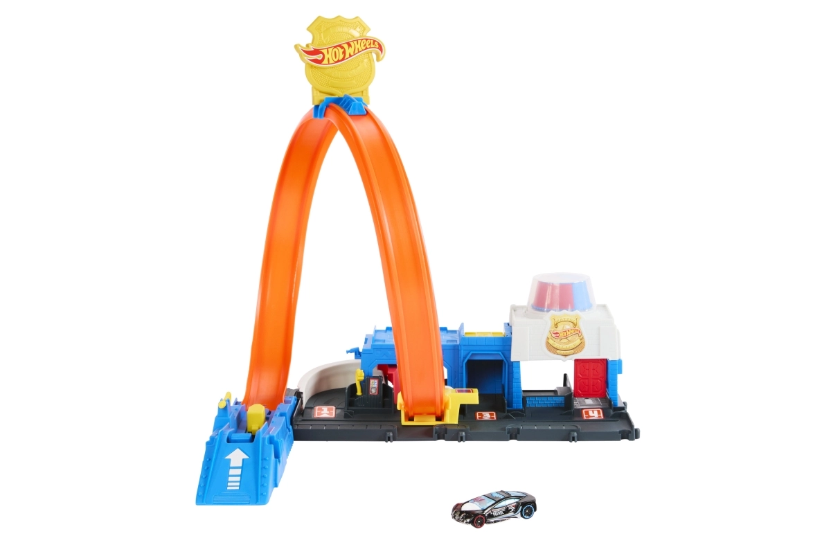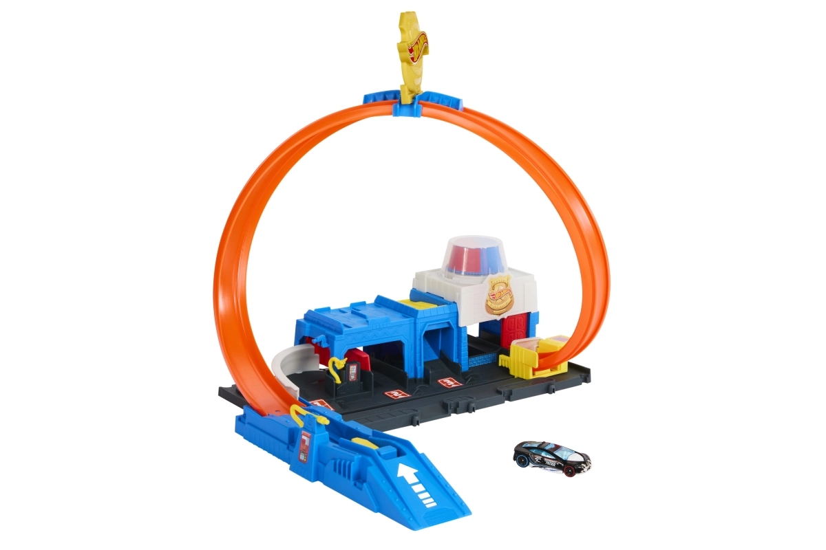 Περιλαμβάνει συμπαγή βάση σε στυλ αστυνομικού σταθμού, εκτοξευτή για δυναμική εκκίνηση και εμβληματική λούπα που δοκιμάζει κάθε αυτοκινητάκι. Το σετ μπορεί εύκολα να συνδεθεί με άλλες πίστες HOT WHEELS, επεκτείνοντας την πόλη με νέες προκλήσεις, ράμπες και εμπόδια.