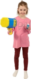 Αυτό το παιδικό πιστόλι σαπουνόφουσκας μετατρέπει κάθε απόγευμα σε ένα ουράνιο σόου. Η συμπαγής διάσταση 22 cm, η εργονομική λαβή και η ελαφριά πλαστική κατασκευή εξασφαλίζουν άνετο κράτημα ακόμη και για μικρότερα παιδιά. Η κεφαλή με πολλαπλά ακροφύσια δημιουργεί καταιγισμό από λαμπερές φούσκες που χαροποιούν μικρούς και μεγάλους.