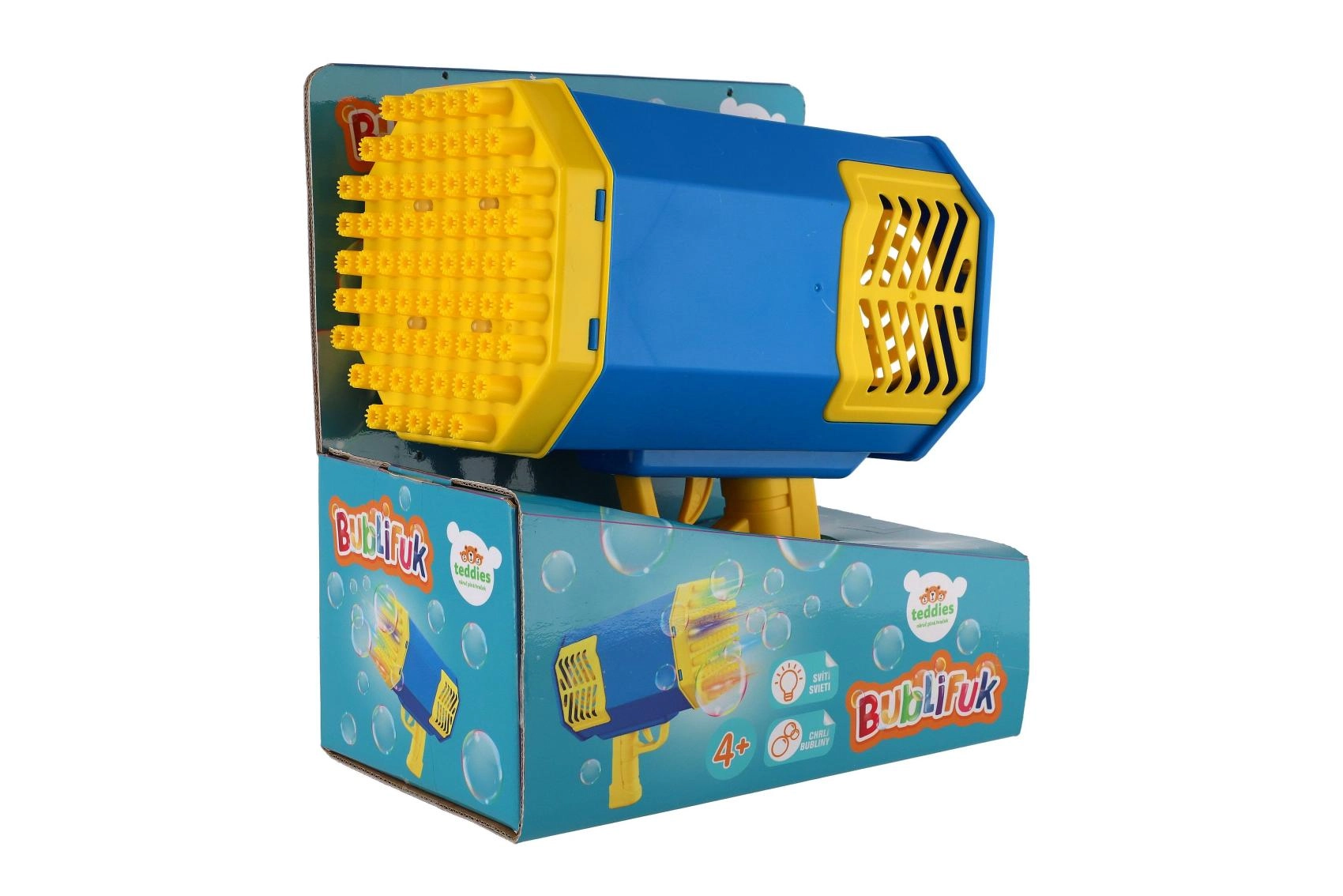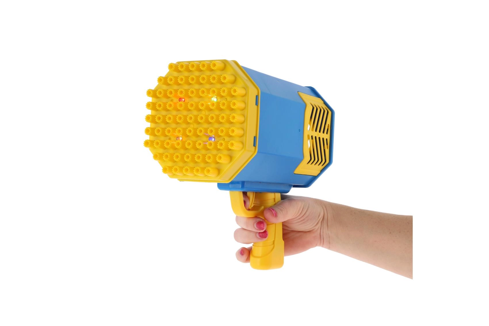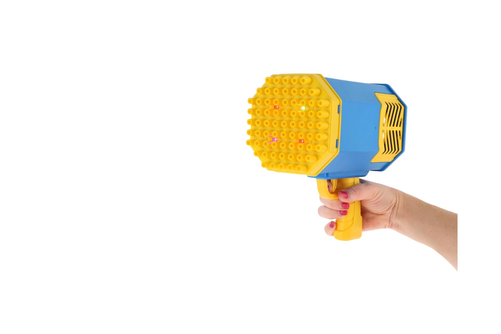 Απογειώστε τη διασκέδαση σε εξωτερικούς χώρους με αυτό το πιστόλι σαπουνόφουσκας! Χάρη στα πολλαπλά ακροφύσια φυσά εκατοντάδες φούσκες σε μια στιγμή, διαθέτει φωτεινά εφέ και επαναφορτιζόμενη μπαταρία στη συσκευασία. Ο χειρισμός είναι εξαιρετικά εύκολος – απλώς βουτήξτε σε ένα μπολ με διάλυμα και πατήστε τη σκανδάλη.