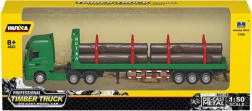 Αυτό το μοντέλο φορτηγού διαθέτει χειροκίνητη διεύθυνση, που επιτρέπει κίνηση προς τα εμπρός, προς τα πίσω και στροφές αριστερά και δεξιά, προσφέροντας ακριβείς ελιγμούς. Το αποσπώμενο τρέιλερ επιτρέπει ποικίλα σενάρια παιχνιδιού και ρεαλιστική προσομοίωση μεταφοράς ξυλείας. Ιδανικό τόσο ως συλλεκτικό κομμάτι όσο και ως παιχνίδι που αναπτύσσει τη φαντασία.