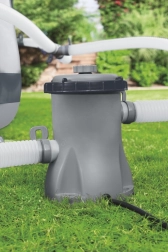 Η αντλία φιλτραρίσματος BESTWAY Flowclear 1249 l/h είναι μια πρακτική λύση για καθαρό και υγιεινό νερό σε όλη τη σεζόν κολύμβησης. Τα δύο παρεχόμενα κυκλώματα σωλήνων εξασφαλίζουν αναρρόφηση και επιστροφή του νερού μέσω του ανταλλακτικού φίλτρου φυσίγγας (τύπος I), που απομακρύνει αξιόπιστα τα μικροσωματίδια.