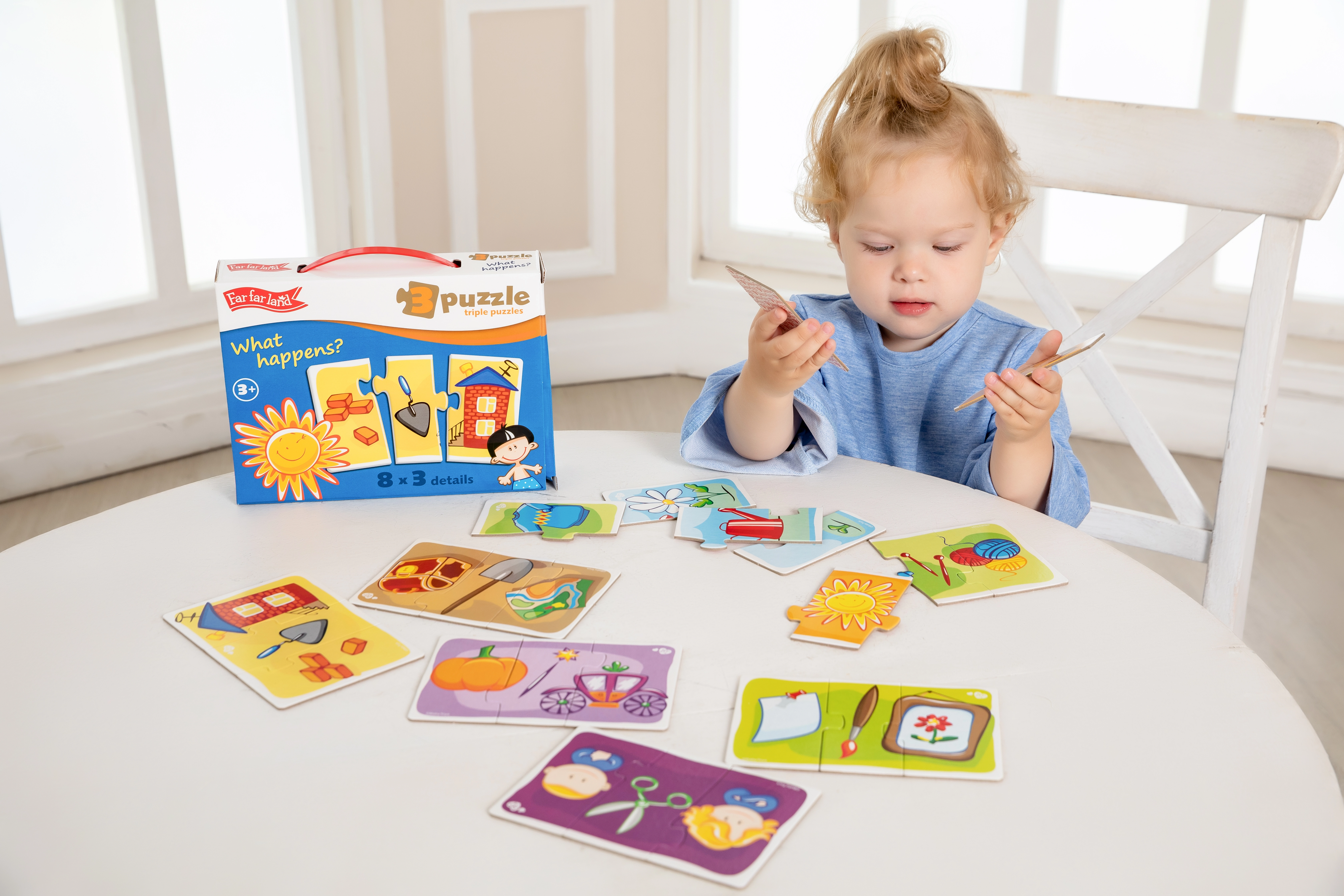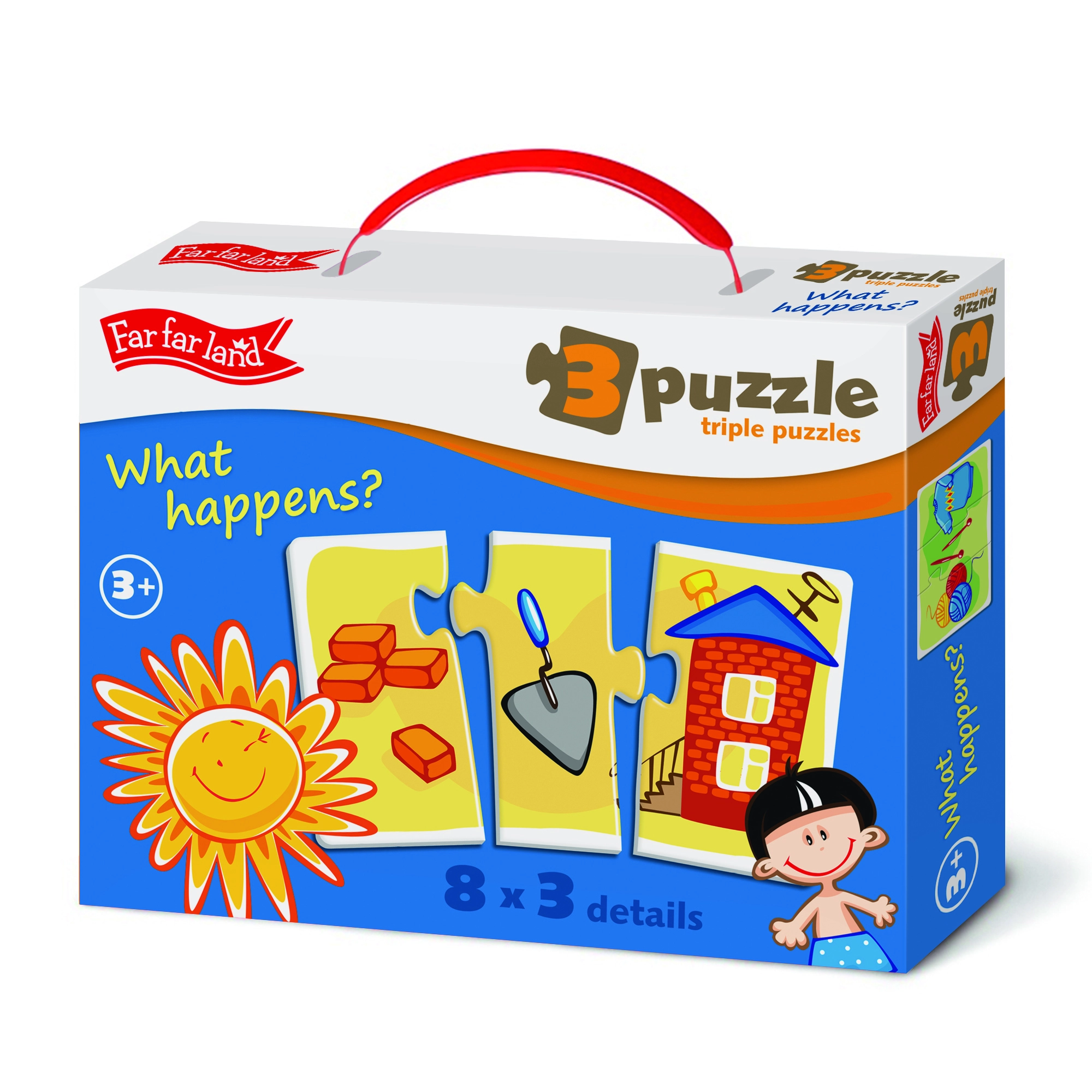 Ανακαλύψτε το έξυπνο σετ Far Far Land, που διδάσκει στα παιδιά με παιγνιώδη τρόπο την αντιστοίχιση και τις σχέσεις μεταξύ αντικειμένων. Κάθε εικόνα χωρίζεται σε τρία κομμάτια και ο στόχος είναι να βρεθεί η σωστή τριάδα που ταιριάζει μεταξύ της. Η συναρμολόγηση καλλιεργεί συγκέντρωση, υπομονή και προσφέρει χαρά με κάθε επιτυχημένη ολοκλήρωση μοτίβου.