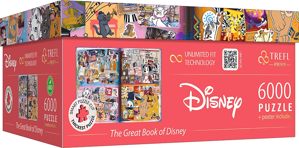 Ανακαλύψτε το μοναδικό «Μεγάλο Βιβλίο DISNEY» με τη μορφή παζλ μεγάλου μεγέθους, που ενώνει εμβληματικούς χαρακτήρες και σκηνές σε ένα εντυπωσιακό μωσαϊκό. Χάρη στην τεχνολογία TREFL Unlimited Fit Technology (UFT) μπορείτε να συνδέετε τις επιμέρους εικόνες (4×1500 κομμάτια) και να δημιουργείτε τη δική σας διάταξη ή να ακολουθήσετε τη συνιστώμενη σύνθεση.