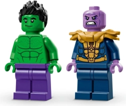 Κατασκευάστε ένα ηρωικό monster truck που αντεπεξέρχεται σε κάθε αποστολή. Η καμπίνα που ανοίγει διαθέτει χώρο για τη μίνι φιγούρα του Hulk, οι τεράστιοι τροχοί και η ανάρτηση αντιμετωπίζουν κάθε έδαφος και η στάμπα Hulk Smash! χαρίζει στο όχημα ακαταμάχητο στυλ. Δεν λείπει ο επιβλητικός Thanos με το Γάντι του Άπειρου και τον Tesseract για επικές συγκρούσεις καλού και κακού.