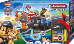 Αγωνιστική διασκέδαση για τους μικρούς! Η πίστα αυτοκινήτων CARRERA FIRST με άδεια PAW Patrol προσφέρει διαδρομή μήκους 3,5 m με διαδραστικά φώτα και ήχους, δύο αυτοκινητάκια (Chase και Marshall) και χειριστήρια ταχύτητας. Χάρη στη εύκολη συναρμολόγηση, τους μαγνήτες και τις επαφές βούρτσας, τα αυτοκινητάκια κρατούν εξαιρετικά στη διαδρομή. Ιδανική πίστα με μπαταρίες για παιδιά από 3 ετών.
