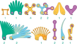 - Ειδικά κομμάτια: φτερά, πτερά, ράμφη· φυλλάδιο με οδηγίες