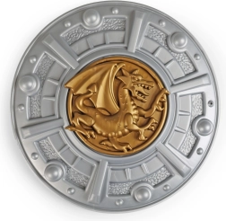 Η λεπτομερής ασπίδα και πανοπλία με χρυσό έμβλημα δράκου προσδίδουν εντυπωσιακή εμφάνιση και αναδεικνύουν τον ιπποτικό χαρακτήρα.