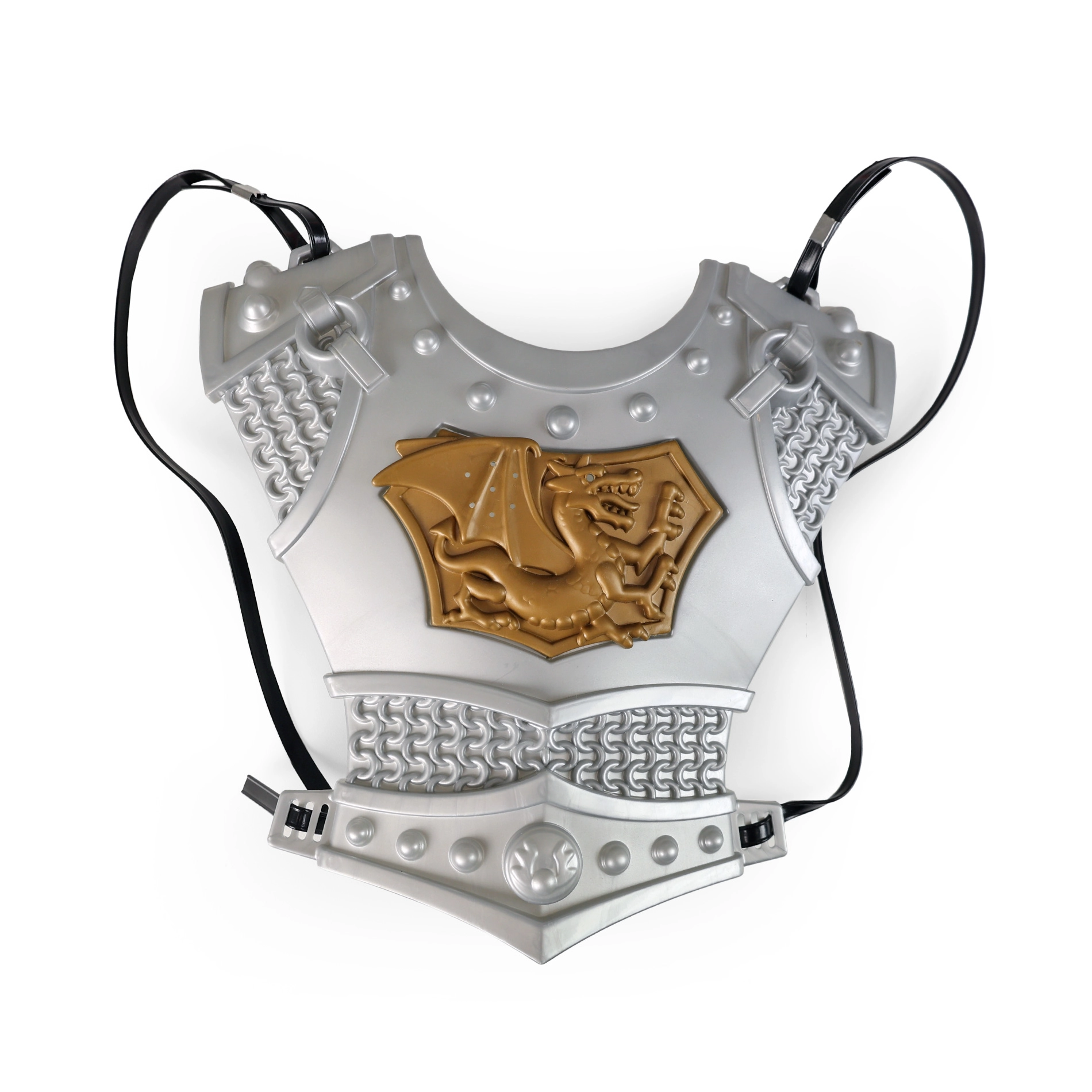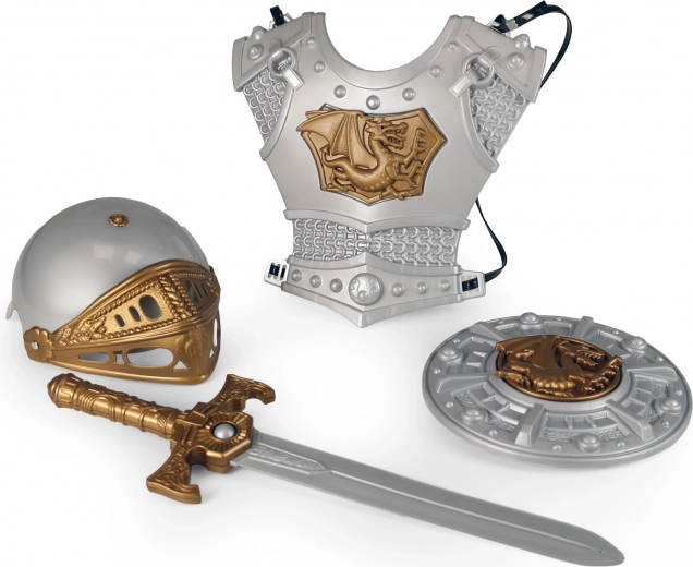 Κράνος, πανοπλία, σπαθί και ασπίδα αποτελούν ένα ολοκληρωμένο σετ, με το οποίο το παιδί είναι έτοιμο για κάθε περιπέτεια – από αποκριάτικο πάρτι έως «μάχες» στο σπίτι.