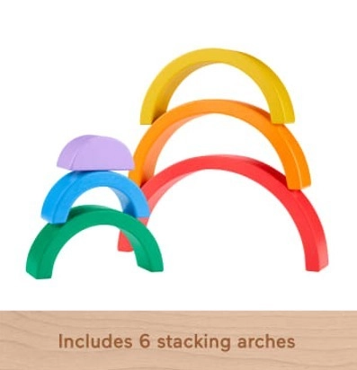 Το ξύλινο σχήμα ουράνιου τόξου της Fisher-Price είναι ιδανικό για μικρά παιδιά που θέλουν να ανακαλύψουν τον κόσμο των χρωμάτων και των σχημάτων. Κάθε ένα από τα έξι τόξα έχει σχεδιαστεί ώστε το παιδί να το πιάνει εύκολα, υποστηρίζοντας την ανάπτυξη της λεπτής κινητικότητας. Το παζλ είναι κατασκευασμένο από ξύλο με πιστοποίηση FSC και βαμμένο με οικολογικά, υδατοδιαλυτά χρώματα: