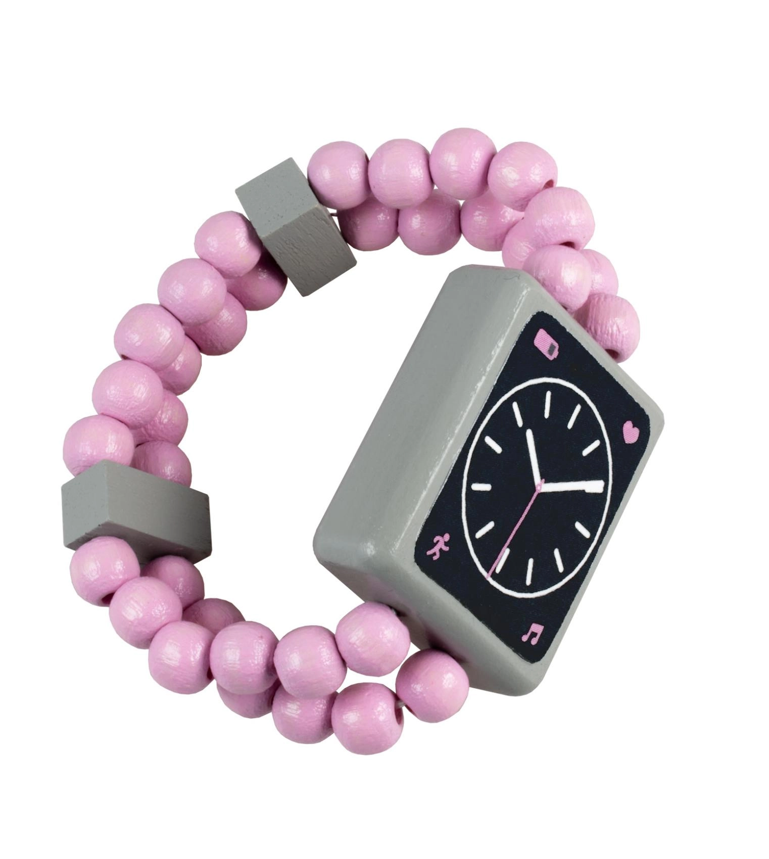 Το ελαστικό βραχιόλι με λείες ξύλινες χάντρες προσαρμόζεται άνετα στο παιδικό χέρι. Ποιοτικά υλικά και προσεγμένη κατασκευή εξασφαλίζουν ασφαλές και ανθεκτικό καθημερινό παιχνίδι. Επιπλέον, τα παιδιά απολαμβάνουν παιχνίδι ρόλων με «έξυπνο» ρολόι.