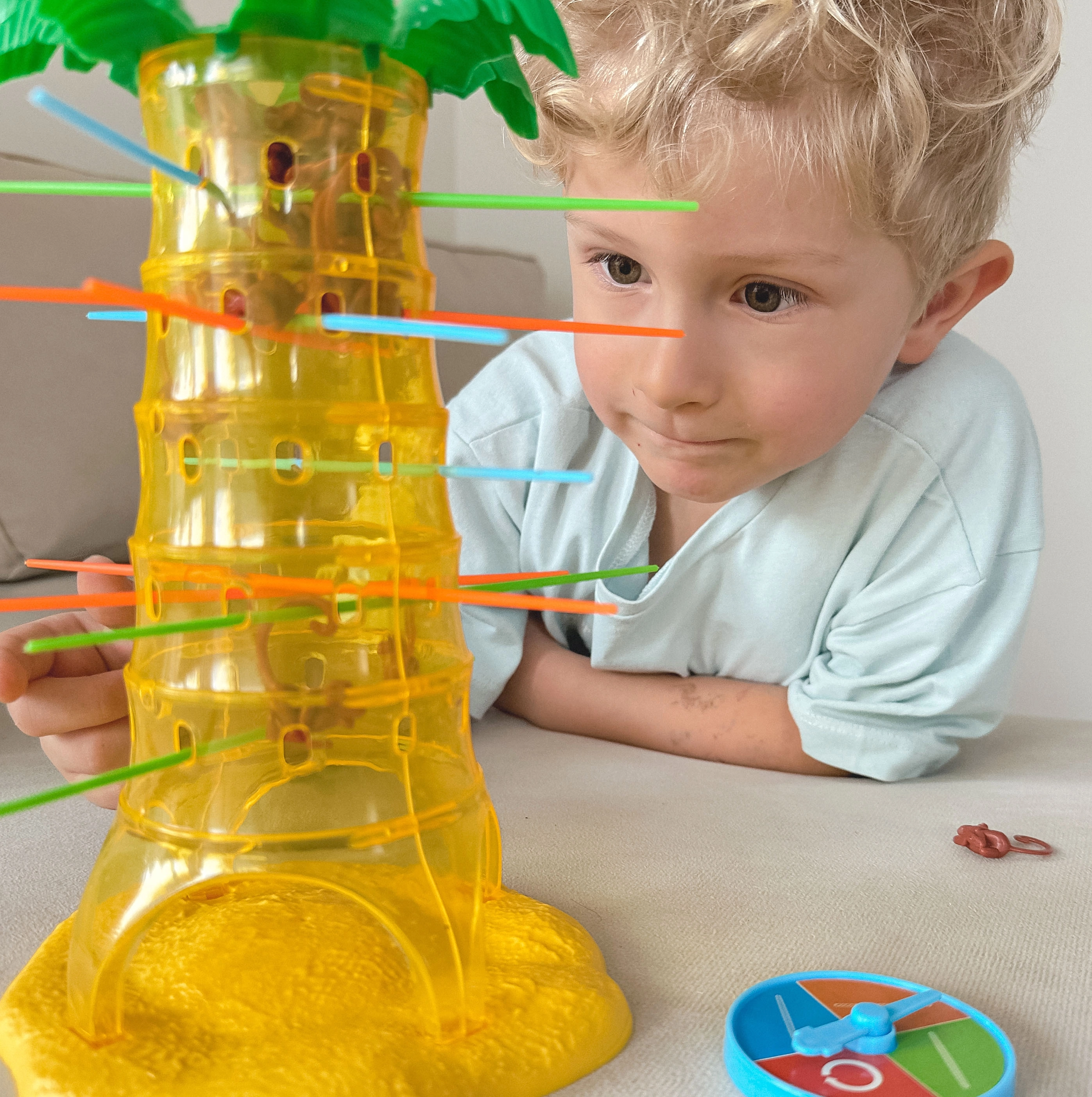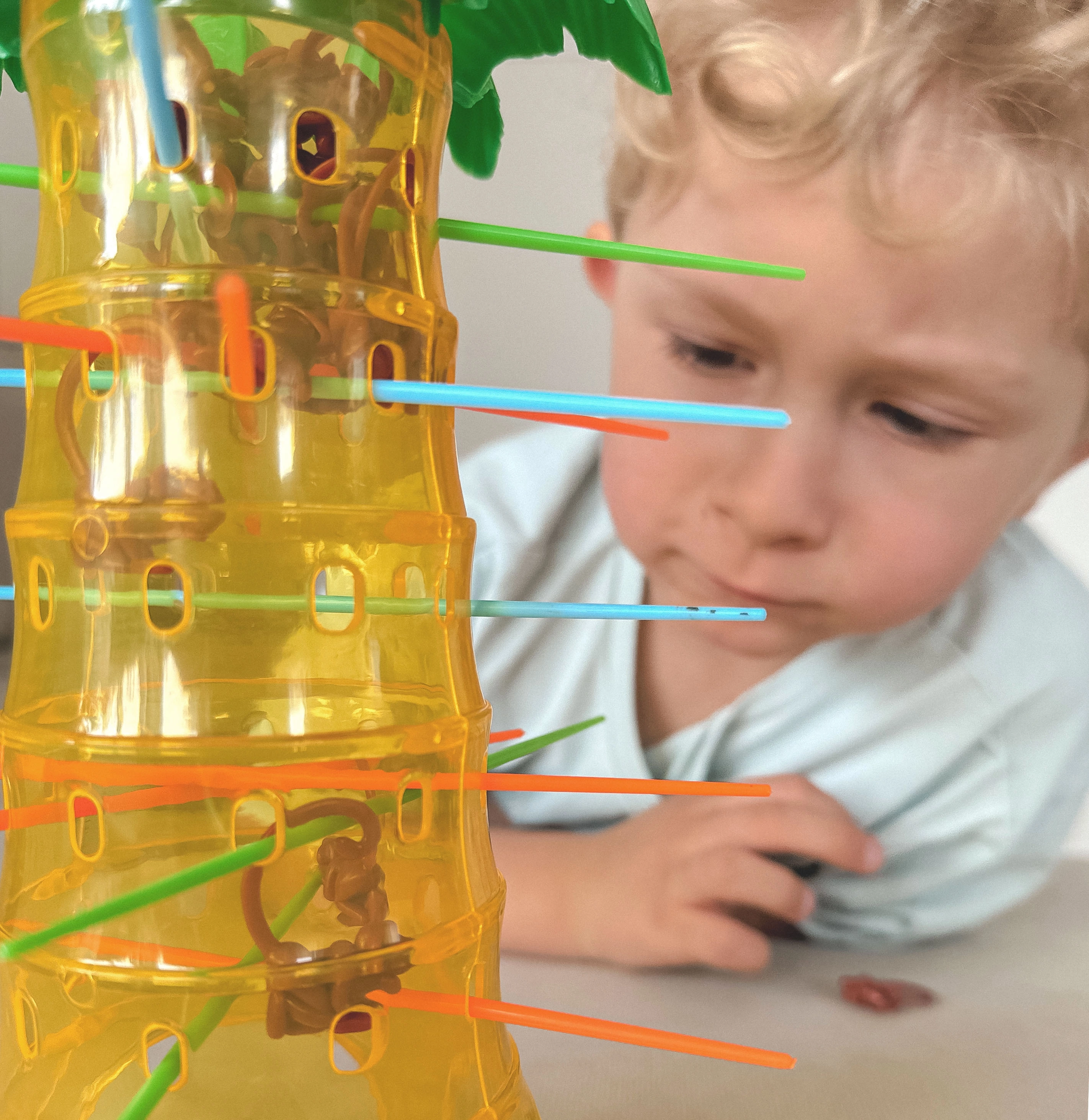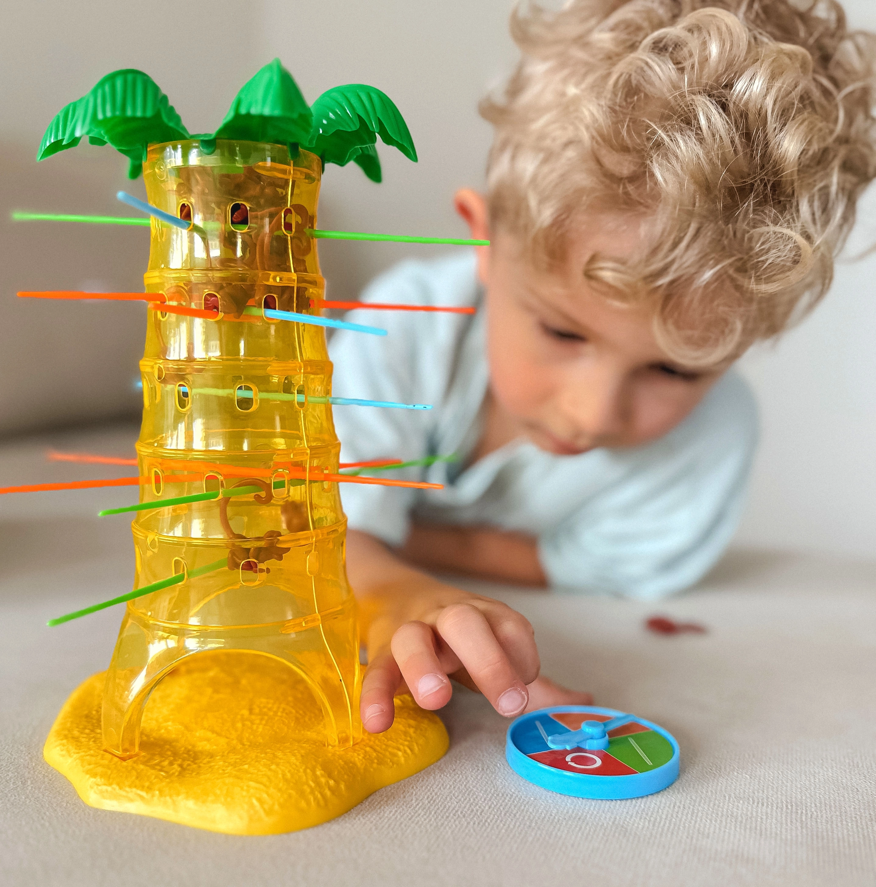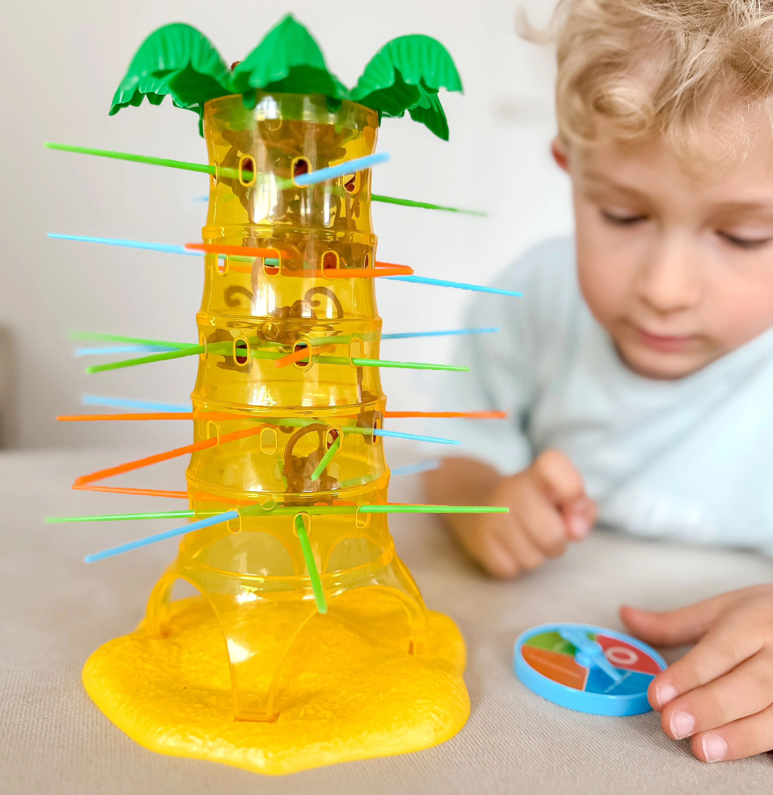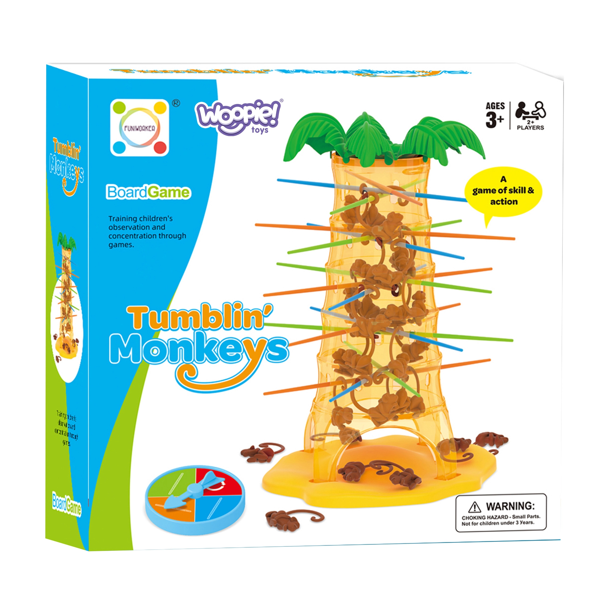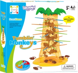 Σε αυτό το υπέροχο παιχνίδι της μάρκας Woopie τοποθετείτε ράβδους στις τρύπες του φοίνικα και ρίχνετε πάνω τους πιθήκους. Κάθε γύρο γυρίζετε τον τροχό και το βέλος καθορίζει ποια ράβδο πρέπει να τραβήξετε. Στόχος είναι να κρατήσετε τους πιθήκους όσο το δυνατόν περισσότερο πάνω στον φοίνικα και να μην προκαλέσετε την πτώση τους. Νικητής είναι αυτός που ρίχνει τους λιγότερους πιθήκους.
