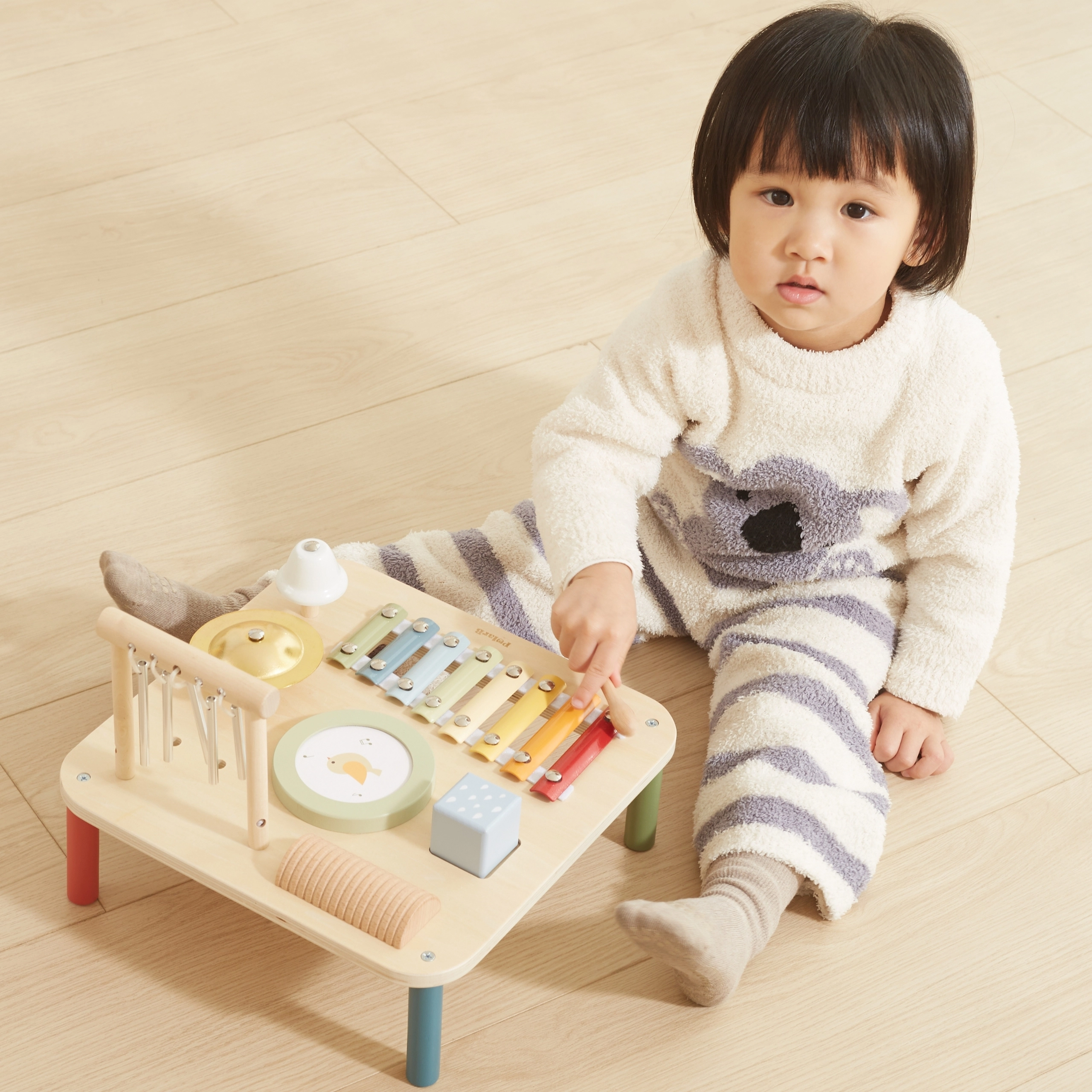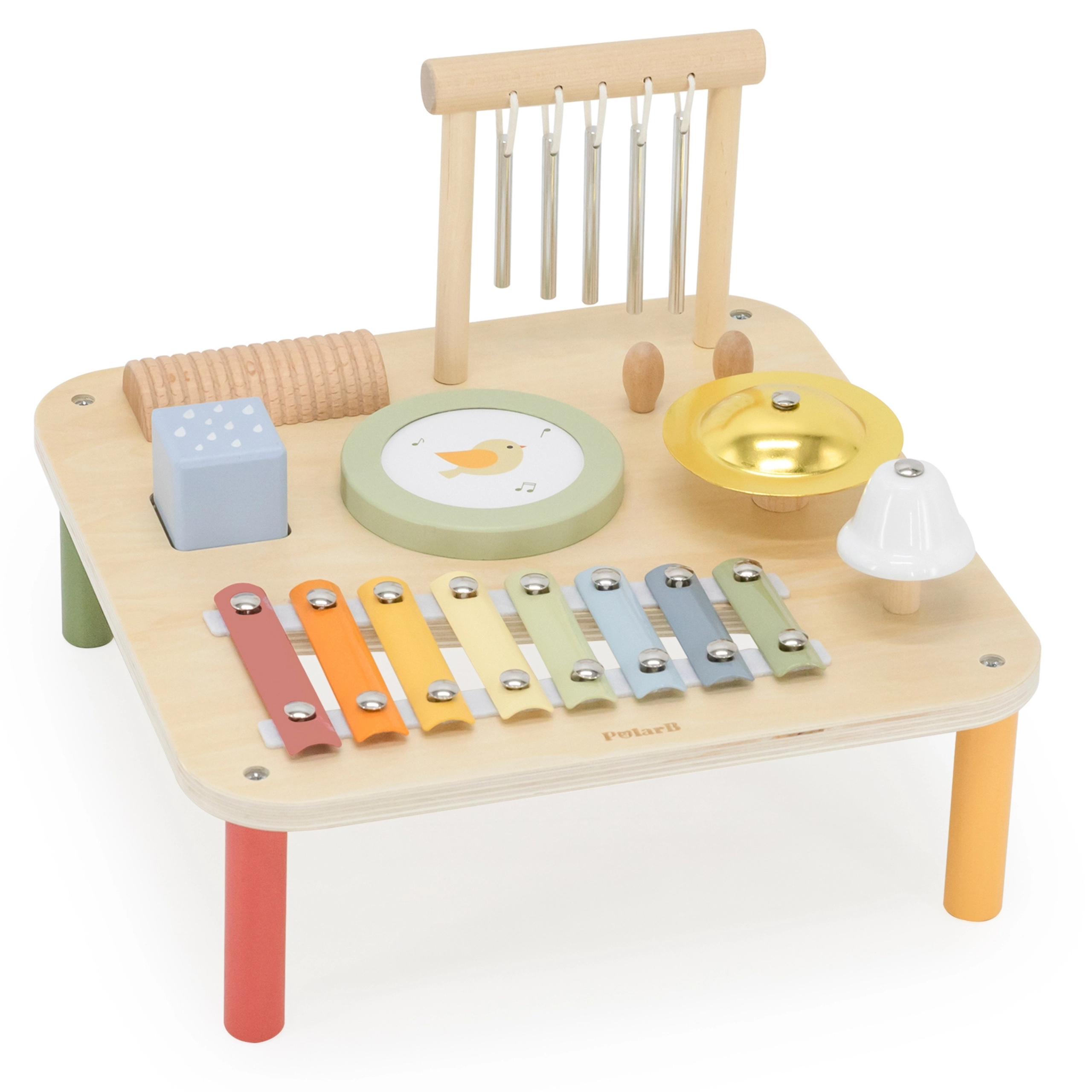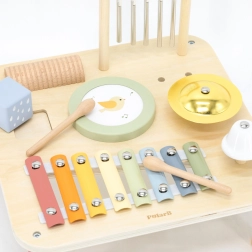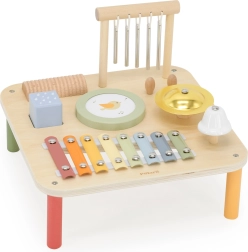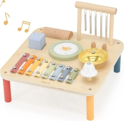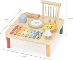 Το τραπεζάκι περιλαμβάνει διάφορα όργανα που βοηθούν στην ανάπτυξη της μουσικής ακοής και του ρυθμικού αισθήματος του παιδιού σας.