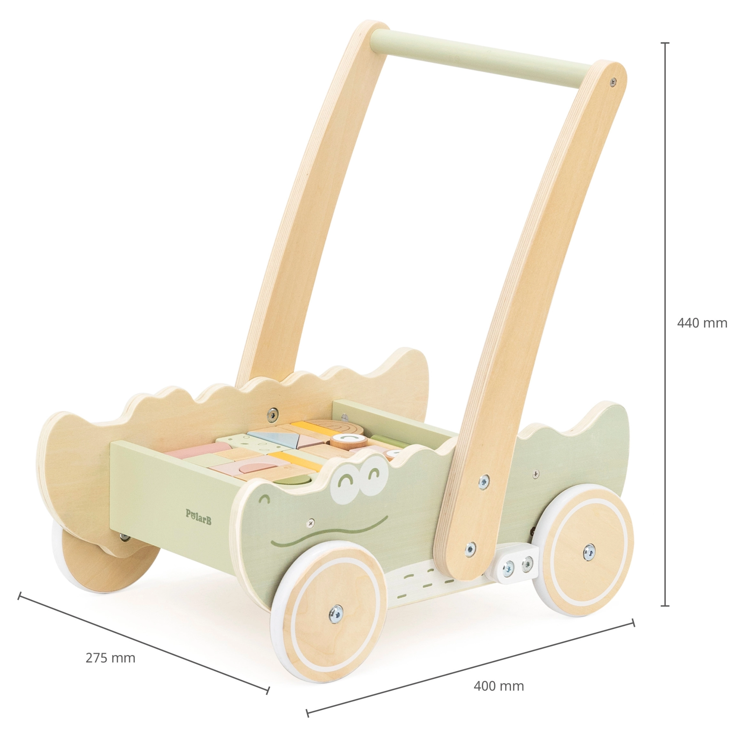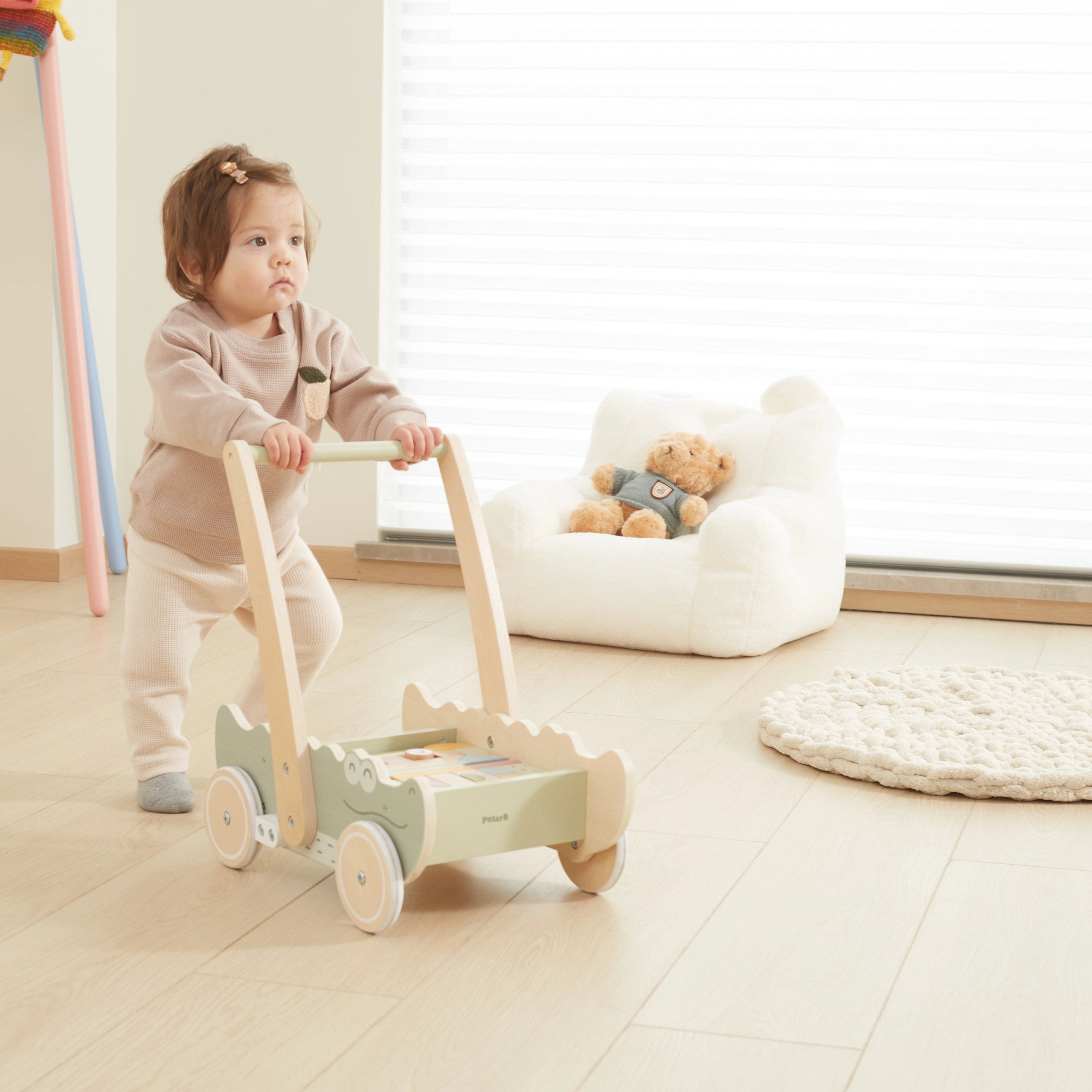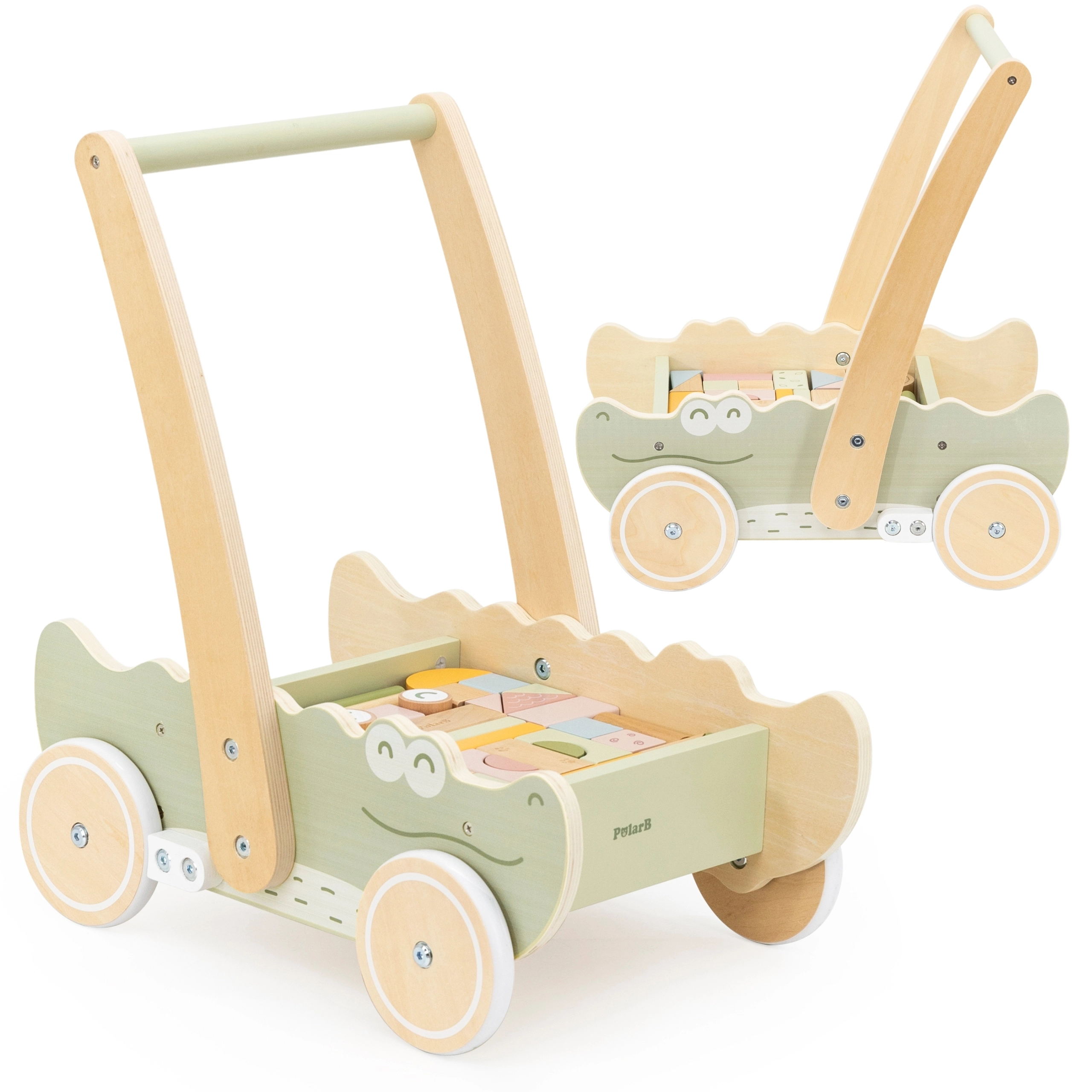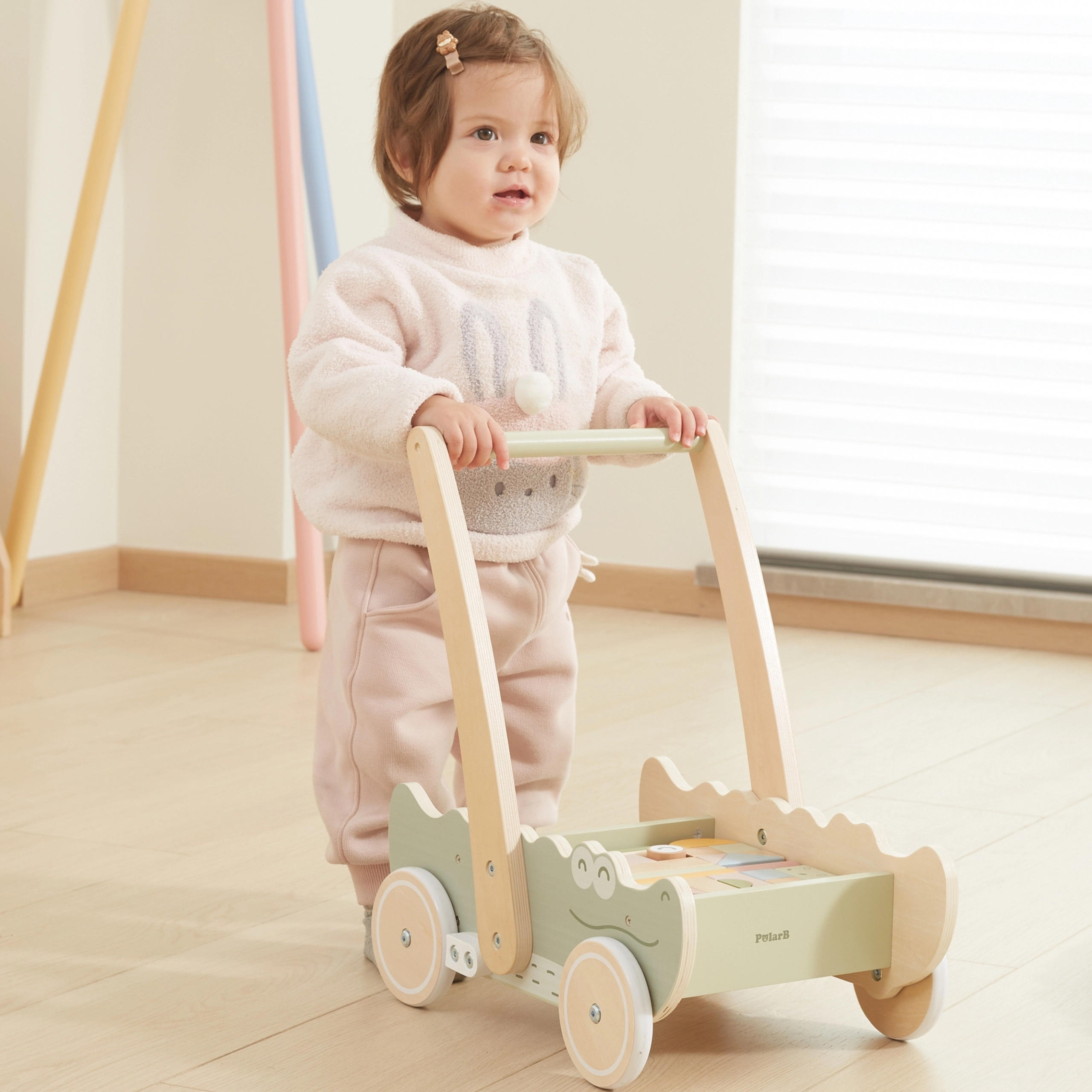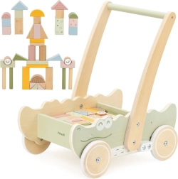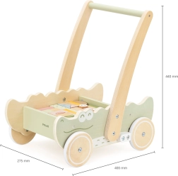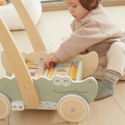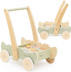 Ζήστε τη χαρά των πρώτων βημάτων με την περπατούρα σε σχήμα κροκόδειλου. Η σταθερή ξύλινη κατασκευή προσφέρει την απαραίτητη υποστήριξη και επιτρέπει στα παιδιά να εξερευνούν με ασφάλεια τον κόσμο γύρω τους. Η περπατούρα είναι εξοπλισμένη με εργονομική λαβή, η οποία βοηθά τα παιδιά να διατηρούν την ισορροπία τους.