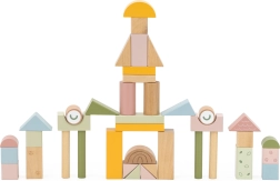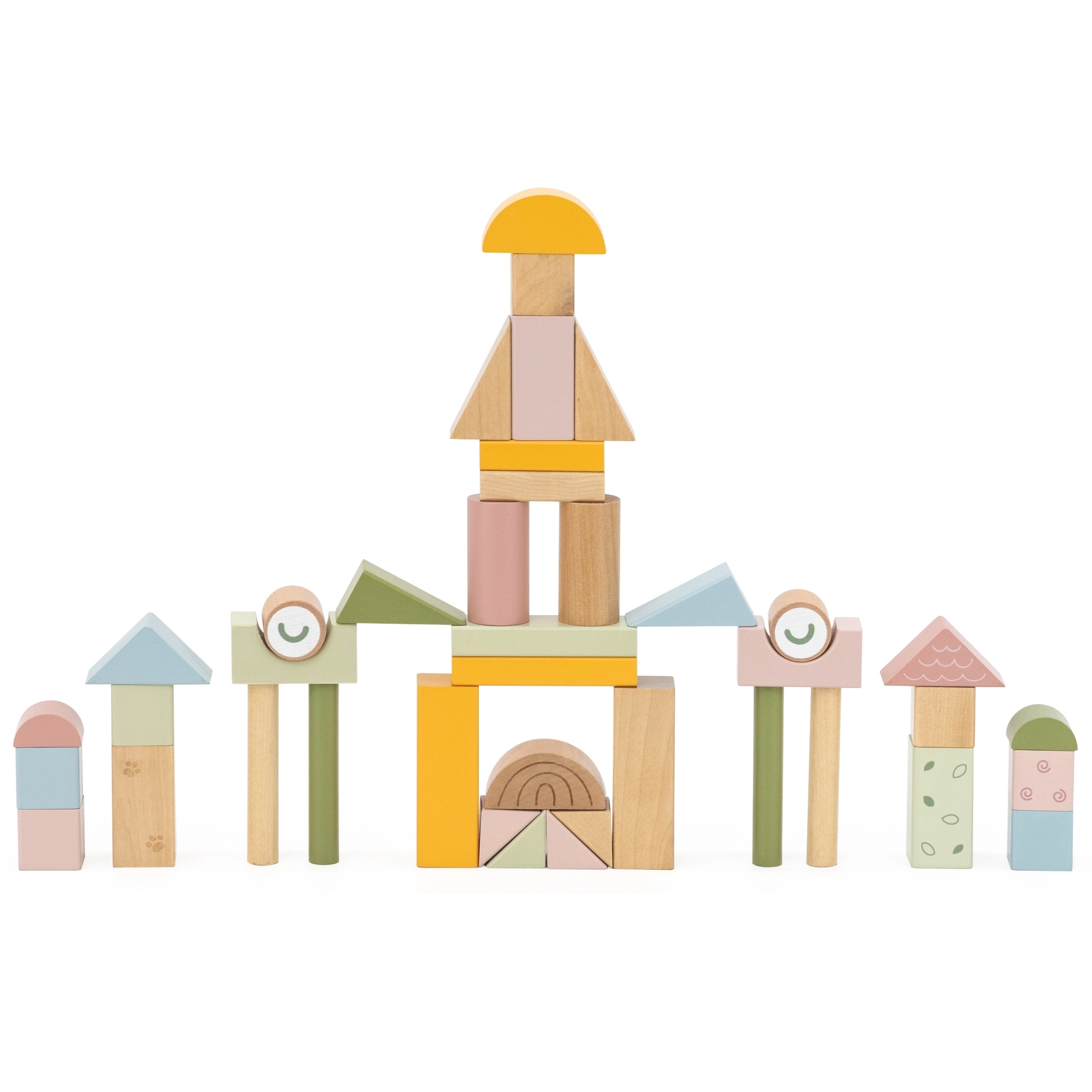 Διάφορα σχήματα και παστέλ χρώματα των κύβων ενθαρρύνουν τη δημιουργικότητα και τη μάθηση χρωμάτων και σχημάτων.