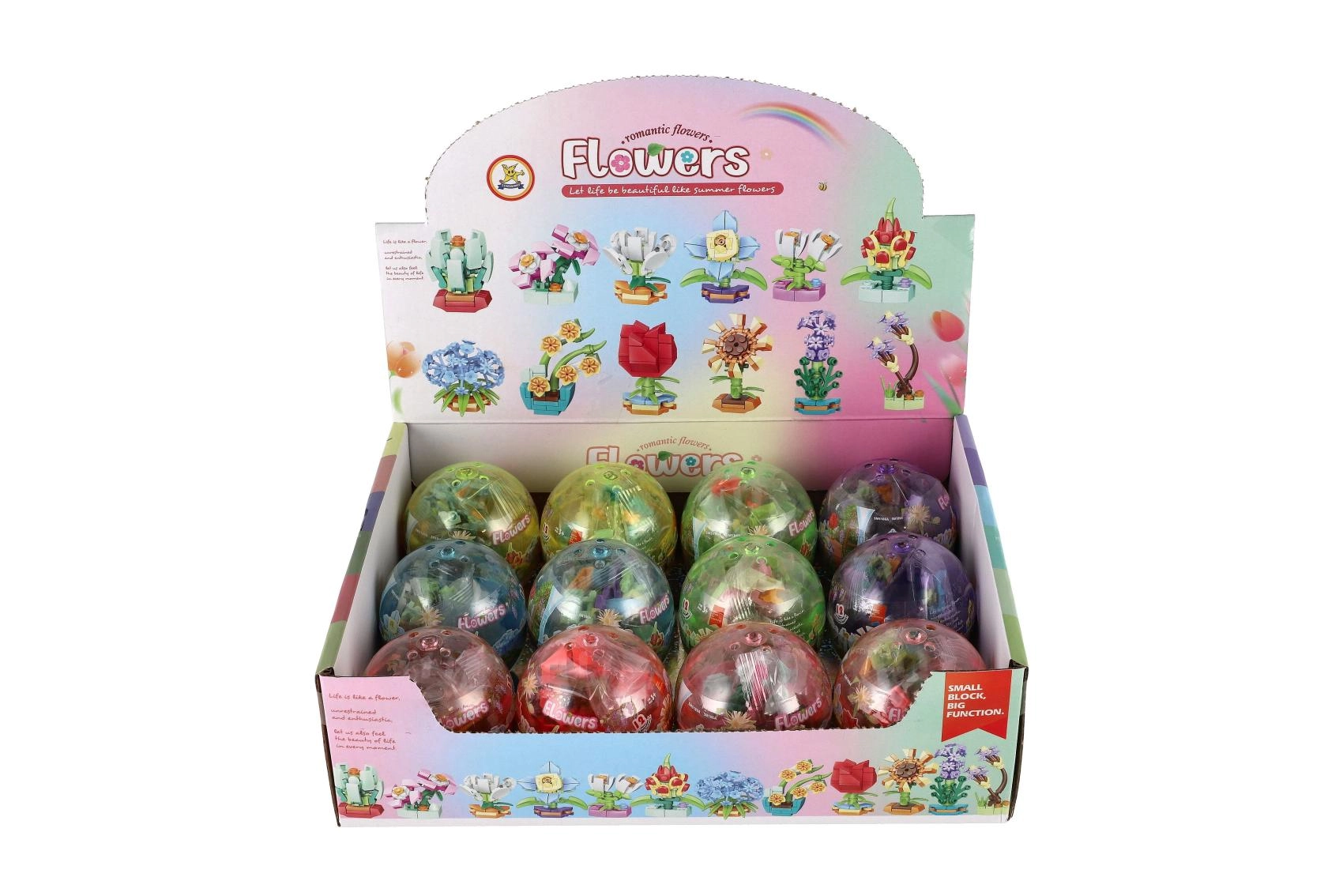 Αυτό το χαριτωμένο μίνι σετ κατασκευής μετατρέπει κάθε κάψουλα σε μια πολύχρωμη έκπληξη. Κάθε λουλούδι αποτελείται από μερικά κομμάτια που εφαρμόζουν με ακρίβεια μεταξύ τους και μετά τη συναρμολόγηση προκύπτει ένα διακοσμητικό μοντέλο μεγέθους περίπου 6 cm. Χάρη στα διαφορετικά είδη λουλουδιών, τα παιδιά μπορούν να δημιουργήσουν τον δικό τους μικρό «λουλουδόκηπο».
