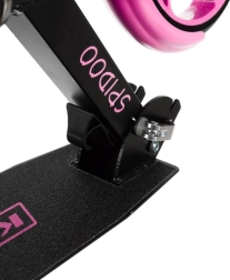 Η ασφάλεια εξασφαλίζεται από το αντιολισθητικό πάτημα, τις αναδιπλούμενες αντιολισθητικές λαβές και το αξιόπιστο φρένο ποδιού στο πίσω φτερό. Χάρη στο ρυθμιζόμενο τιμόνι 87–92–98 cm το πατίνι προσαρμόζεται στο ύψος του παιδιού και «μεγαλώνει» μαζί του.