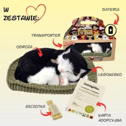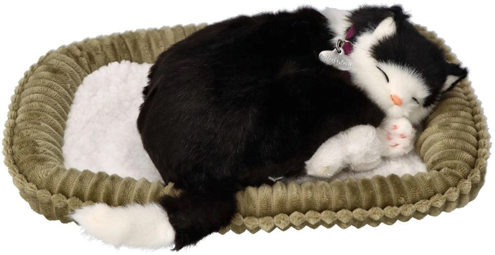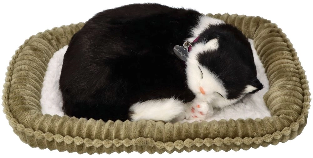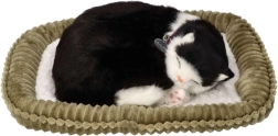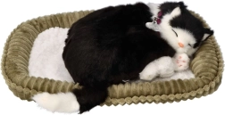 Αυτή η ρεαλιστική λούτρινη γατούλα σε ασπρόμαυρο χρώμα κοιμάται γαλήνια στο κρεβατάκι της και «αναπνέει» απαλά, δημιουργώντας ζεστή ατμόσφαιρα και την αίσθηση παρουσίας πραγματικού κατοικιδίου. Χάρη στη λεπτομερή κατασκευή, το περιλαίμιο με καρτελάκι και το απαλά μαλακό τρίχωμα, είναι ένα υπέροχο δώρο για παιδιά από 3 ετών και λάτρεις των γατών.