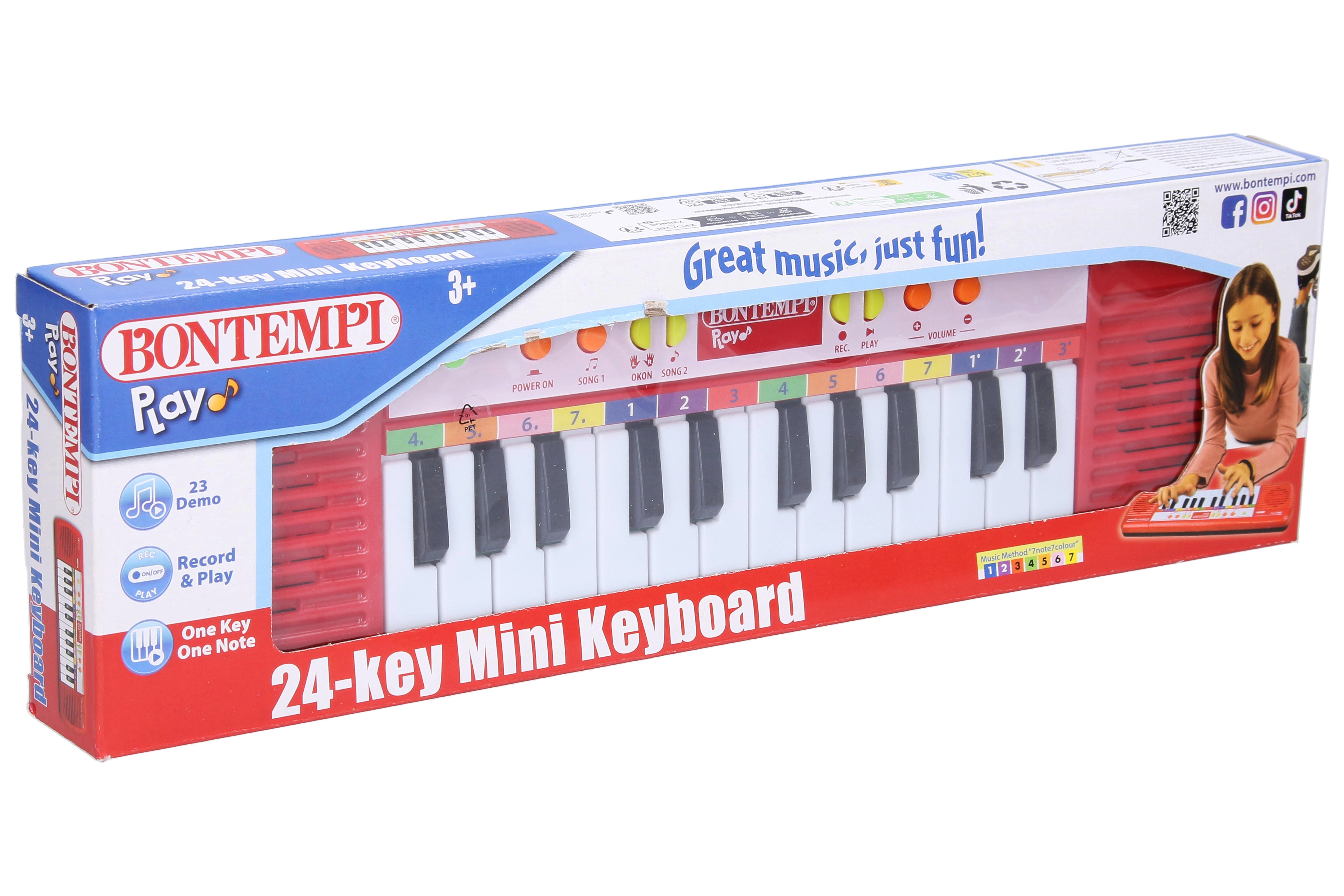 Ανακαλύψτε τη χαρά της μουσικής με τα ηλεκτρονικά μίνι πλήκτρα της Bontempi, που το παιδί σας θα αγαπήσει αμέσως. Αυτό το μουσικό όργανο είναι εξοπλισμένο με σειρά χρήσιμων λειτουργιών που κάνουν τα πρώτα βήματα στη μουσική πιο ευχάριστα και εύκολα:
