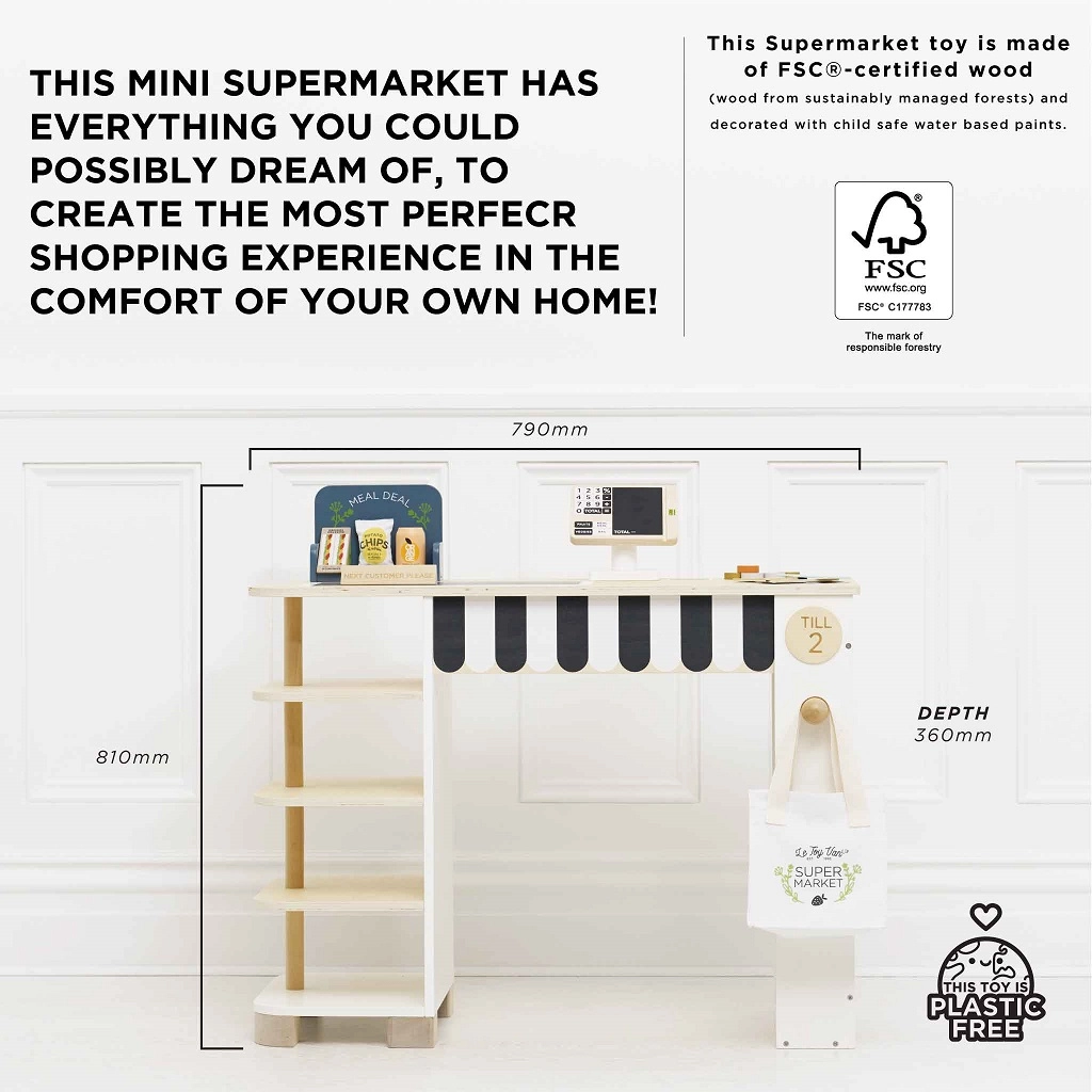 Δημιουργήστε για τα παιδιά το δικό τους μαγαζί με τον όμορφο ξύλινο πάγκο LE TOY VAN. Αυτό το σετ προσφέρει ταμειακή μηχανή, ταινιόδρομο, σκάνερ και πλούσια αξεσουάρ τροφίμων για ρεαλιστικό παιχνίδι αγορών. Κατασκευασμένο από ξύλο FSC και φυσικό βαμβάκι, 100% χωρίς πλαστικό, ασφαλές και ανθεκτικό για καθημερινό παιχνίδι.