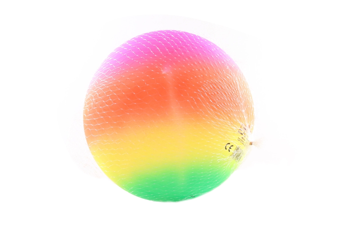 Απολαύστε παιχνίδι με την πολύχρωμη μπάλα σε αποχρώσεις ουράνιου τόξου με διάμετρο 23 cm. Είναι ελαφριά, εύκολη στο κράτημα και ιδανική για παιχνίδια στον κήπο και στην παραλία. Κατάλληλη για παιδιά από 3 ετών, συσκευασμένη σε δίχτυ και παραδίδεται ξεφουσκωμένη για εύκολη μεταφορά.