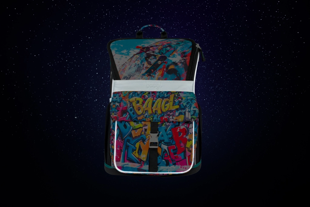 Τραβήξτε τα βλέμματα με τη σχολική τσάντα BAAGL Zippy Skatepark, γεμάτη χρώματα και δημιουργικά μοτίβα.