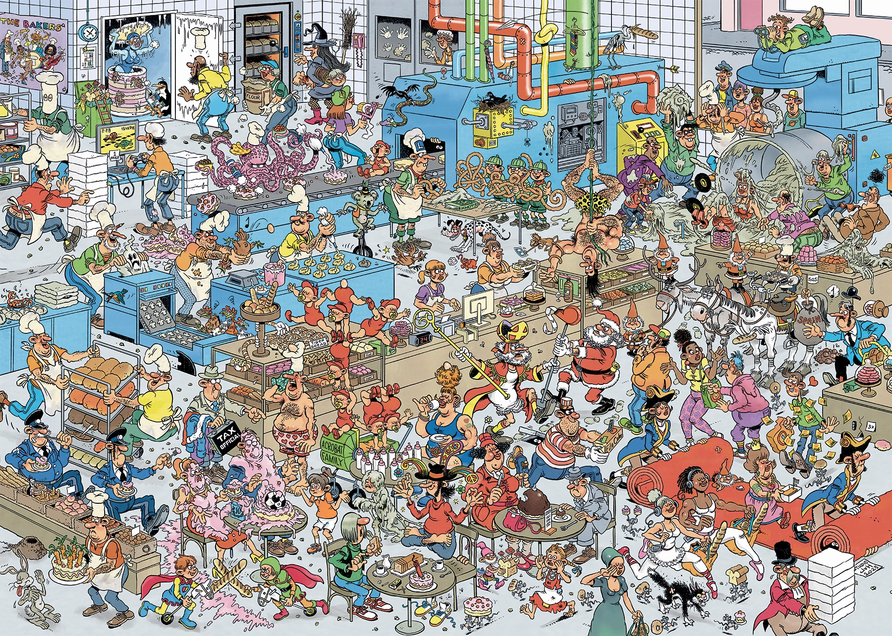 Μπείτε στον πολυάσχολο κόσμο του αρτοποιείου από τη θρυλική σειρά JAN VAN HAASTEREN. Κάθε σκηνή είναι γεμάτη χιούμορ και απρόσμενες καταστάσεις – αναζητήστε εμβληματικά μοτίβα όπως το πτερύγιο καρχαρία, τα περιπλανώμενα χέρια, τη οδοντοστοιχία, τον Άγιο Νικόλαο και ακόμη και το αυτοπορτρέτο του δημιουργού. Χάρη στην ακριβή εκτύπωση και τα πλούσια χρώματα, η συναρμολόγηση είναι απόλαυση από το πρώτο έως το τελευταίο κομμάτι.
