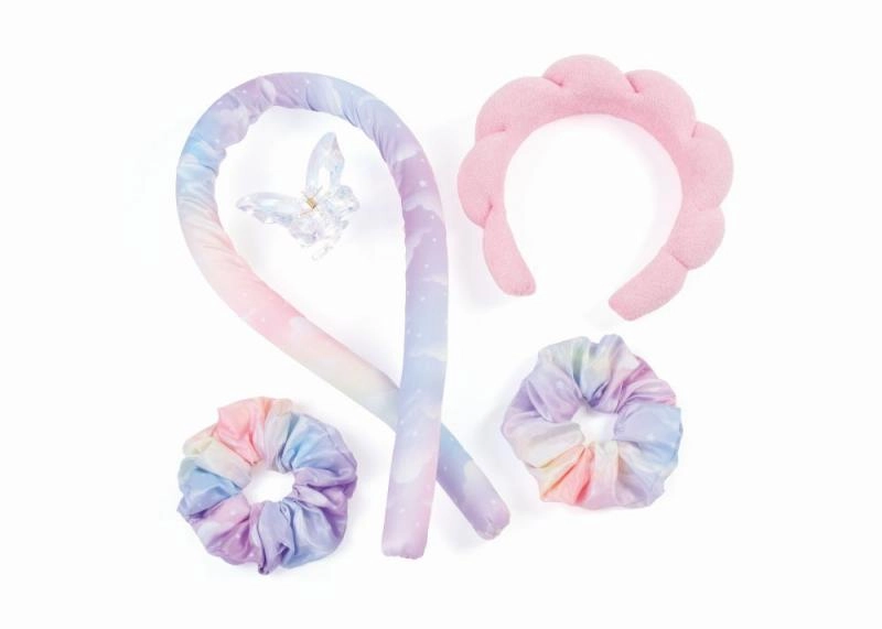 Στη συσκευασία θα βρείτε τη συσκευή χωρίς θερμότητα, δύο scrunchies, πεταλούδα-κλιπ και αφράτη στέκα – όλα αρμονικά συντονισμένα χρωματικά για χαρά στο styling.