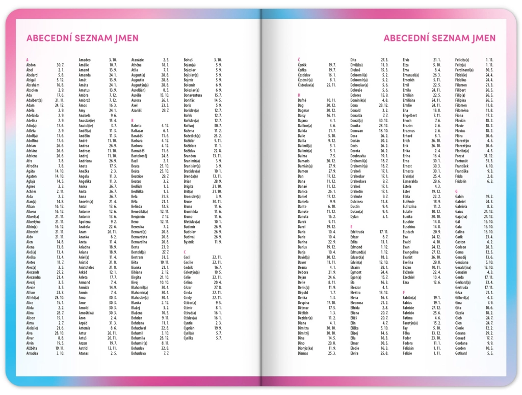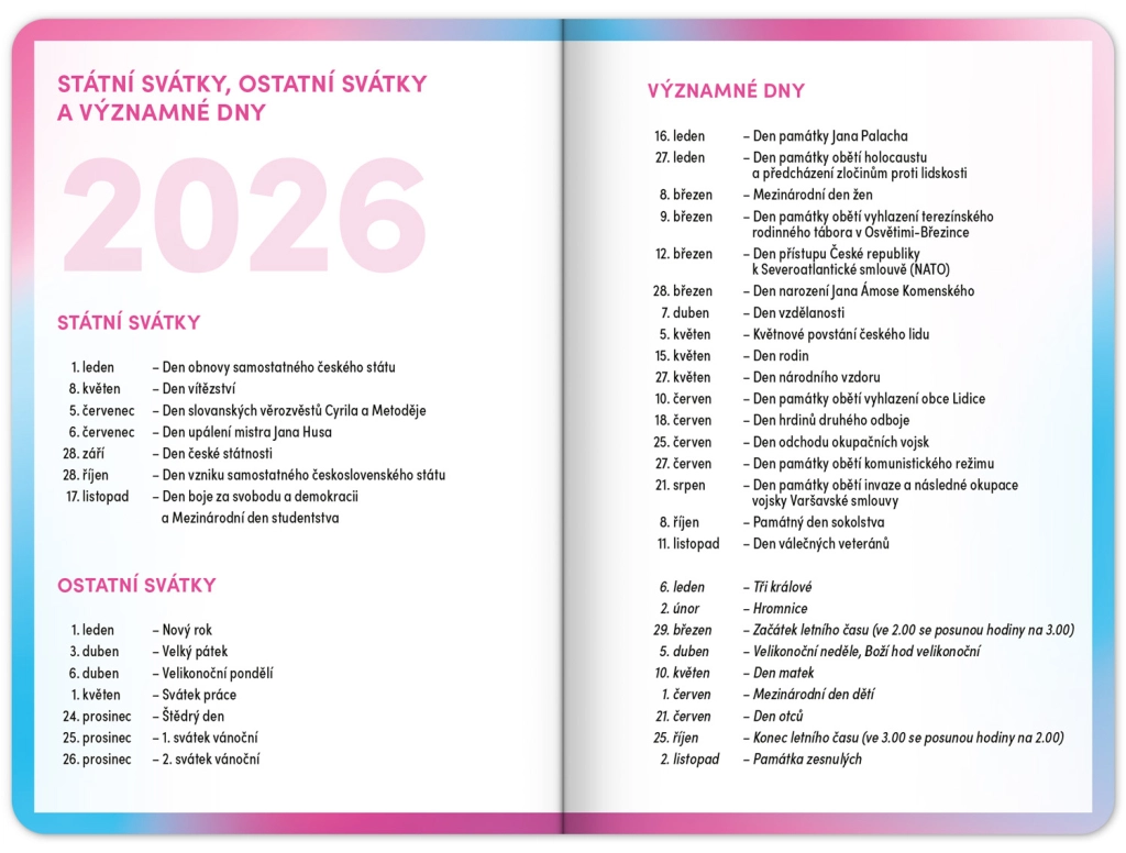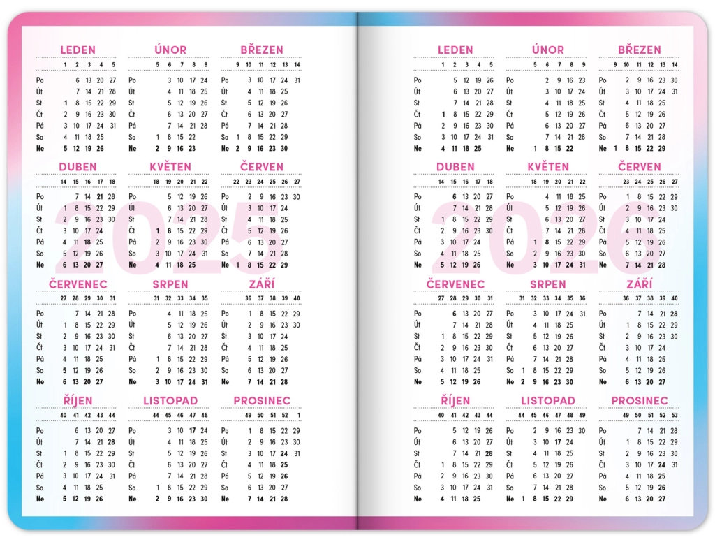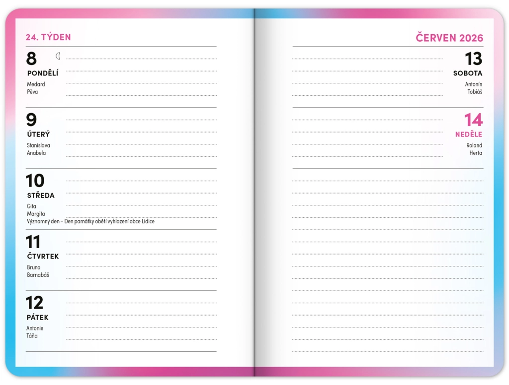 - Τσεχικό εβδομαδιαίο ημερολόγιο σε γραμμές με ονόματα και αργίες.